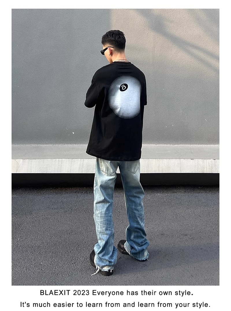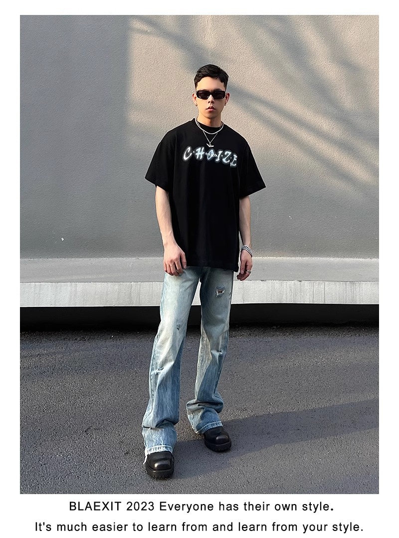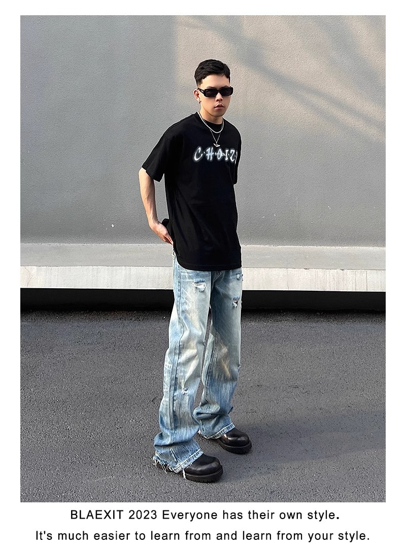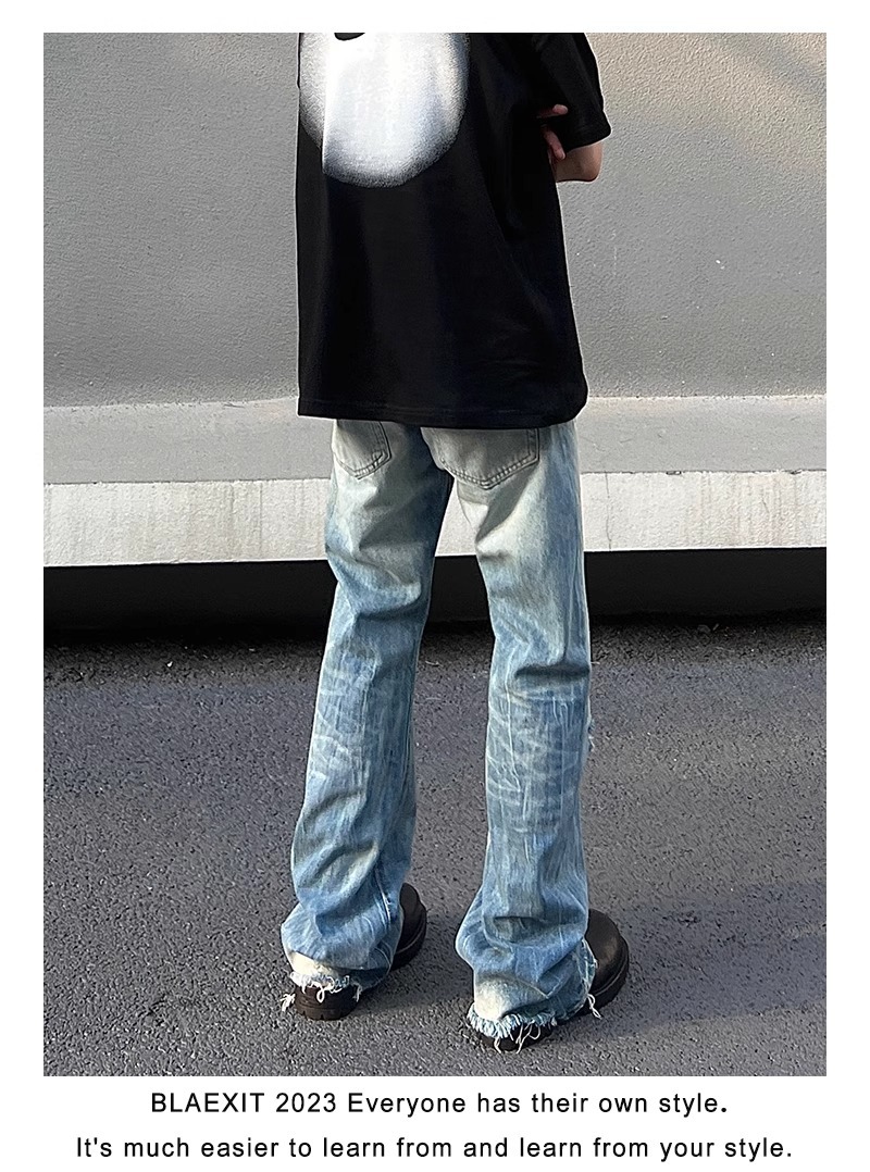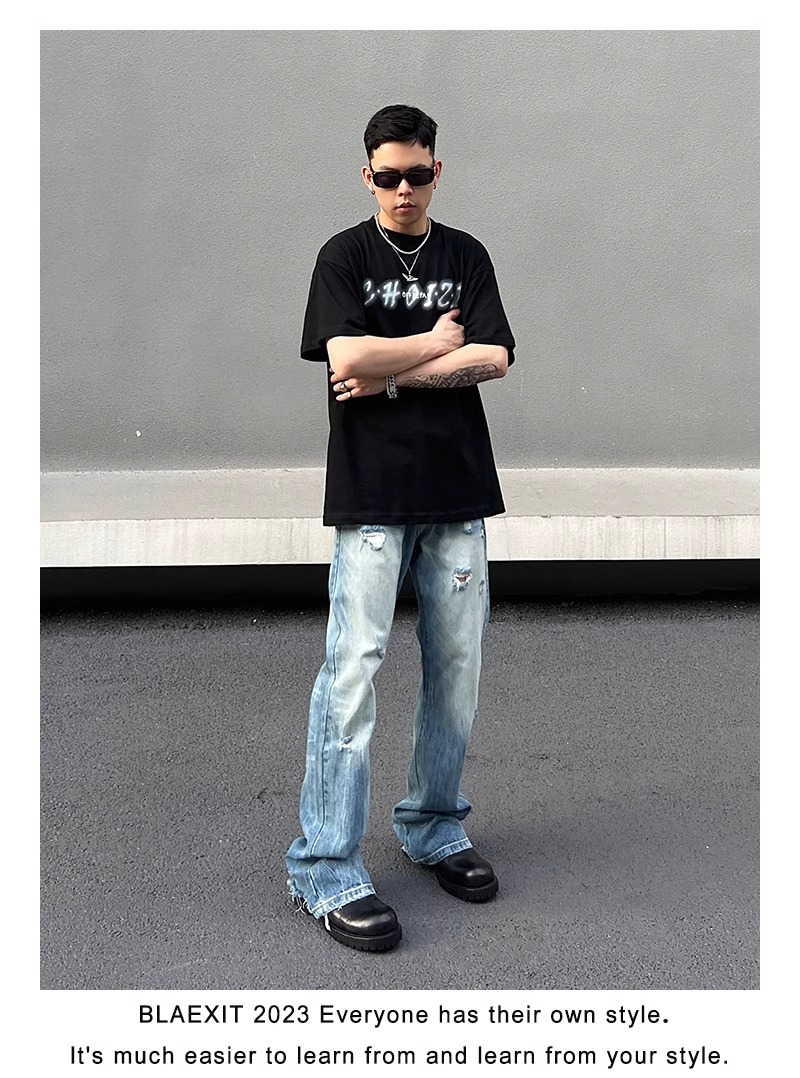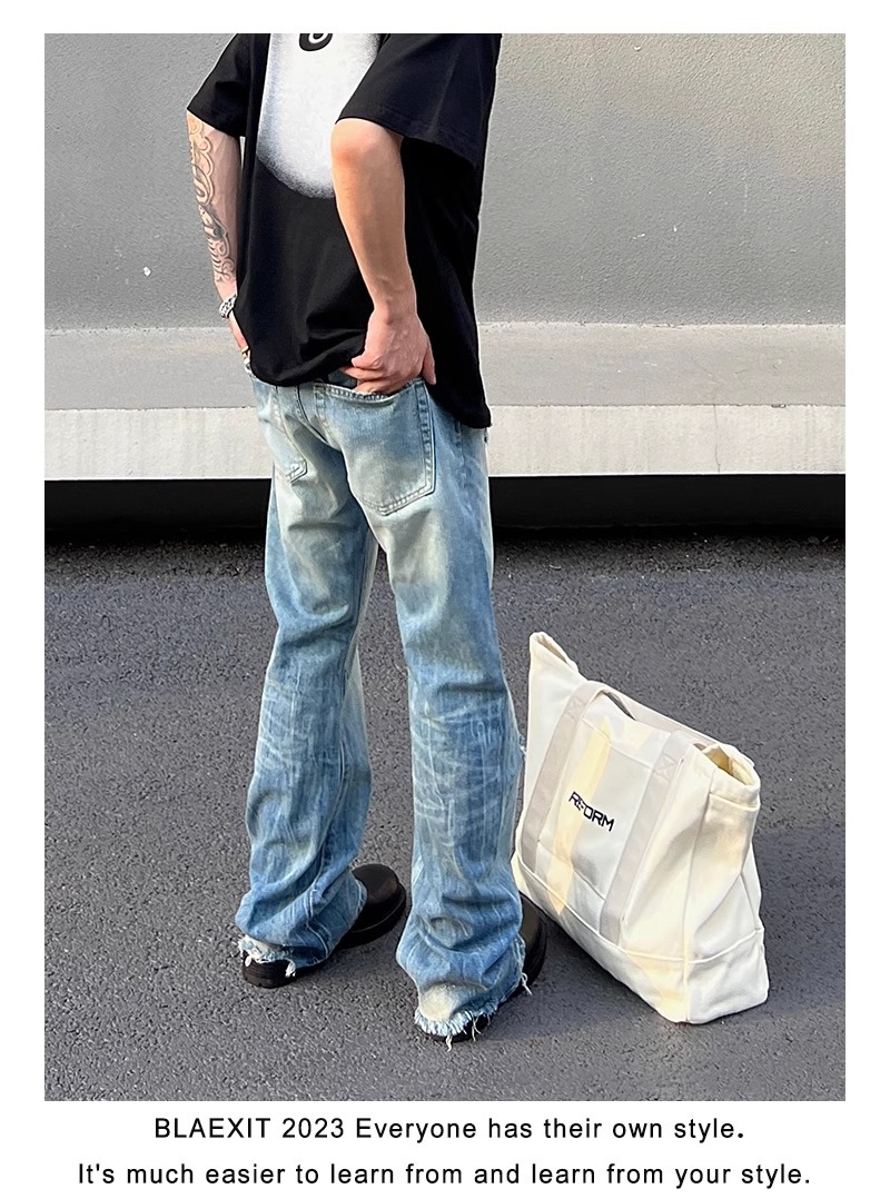 아메리칸 하이 스트리트 2025 뉴 워싱 라이트 블루 찢어진 청바지 남성 여름 스트레이트 캐주얼 청바지 트렌드스토어 가기