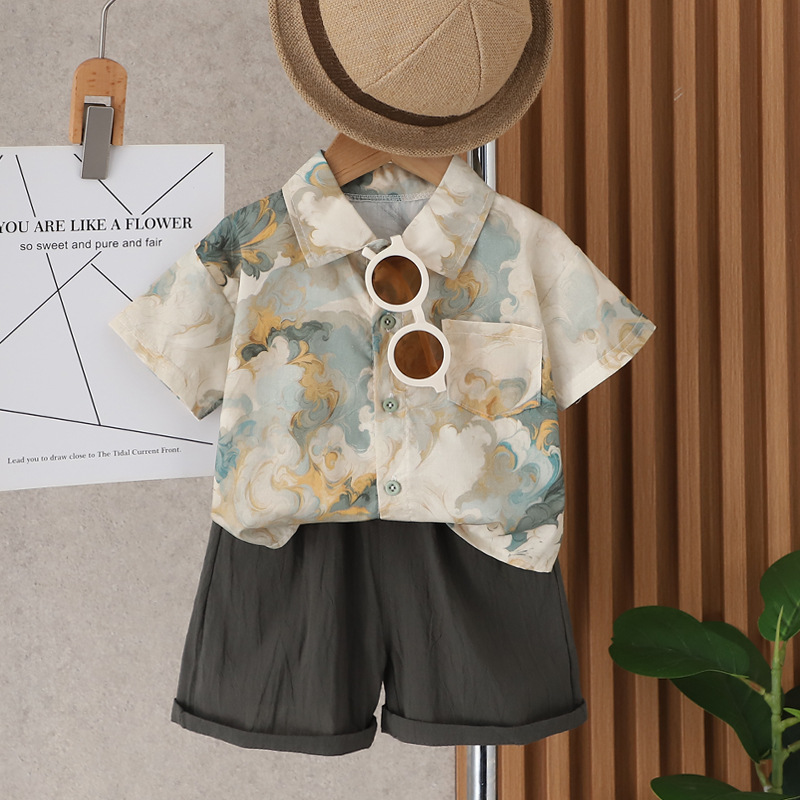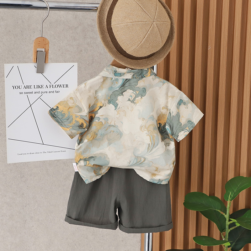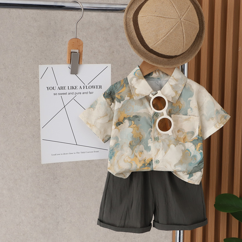 소년 여름 반팔 양복 2025 새로운 스타일 소년 셔츠 아동용 베이비 캐주얼 투피스 아동복스토어 가기
