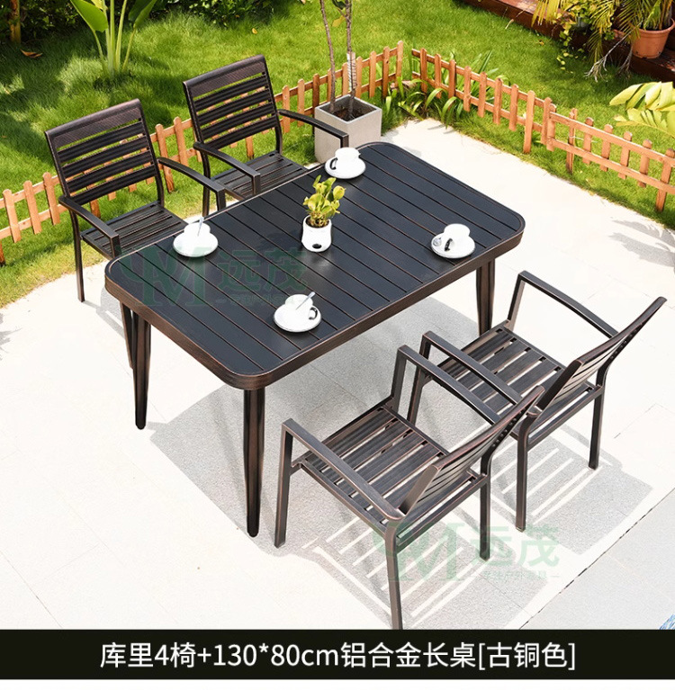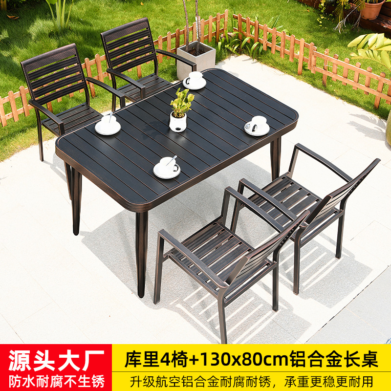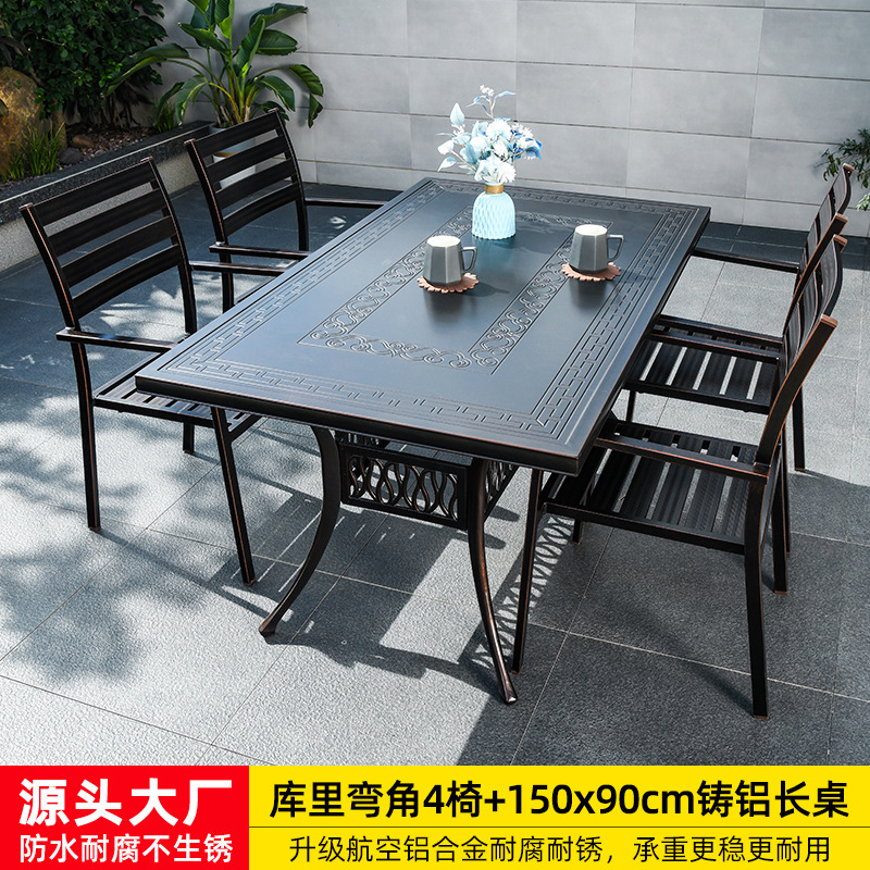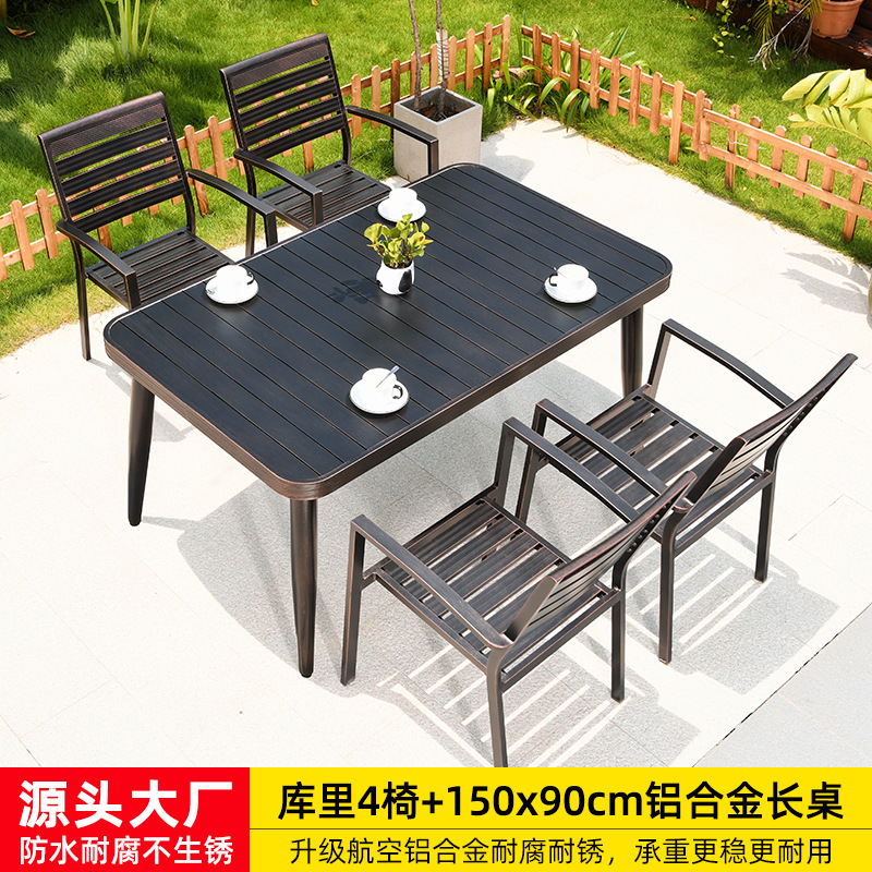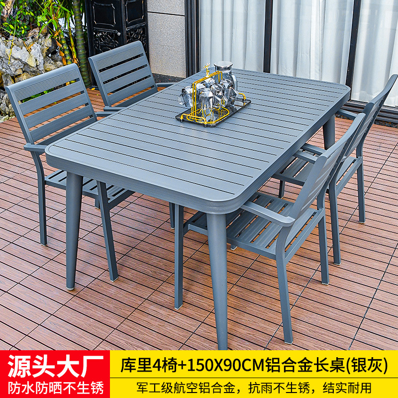 • 의자 4개 + 150x90cm Xiangyun 알루미늄 판 각인 긴 테이블 [모두 알루미늄 - 녹슬지 않음] 선택