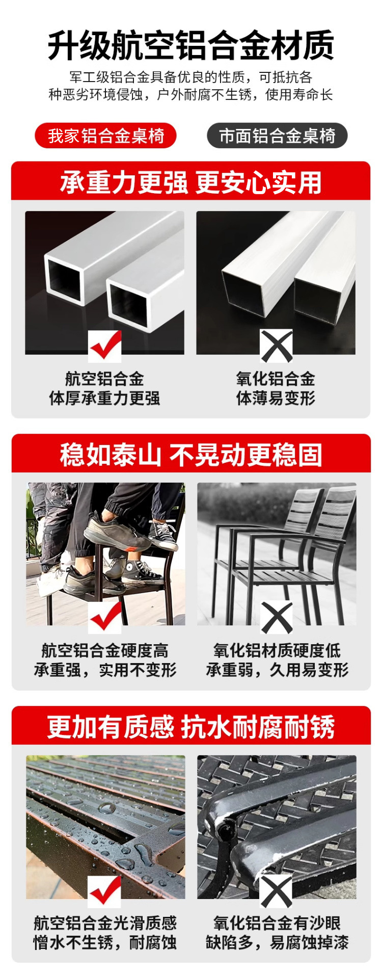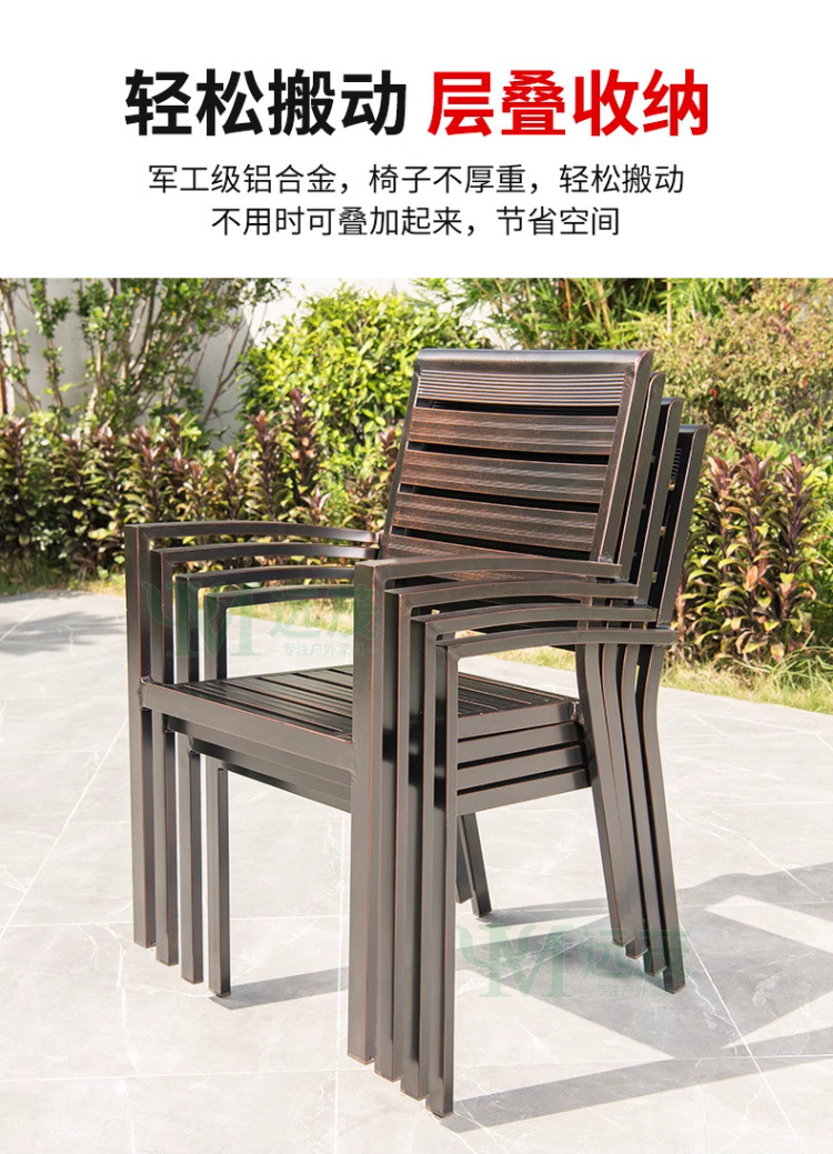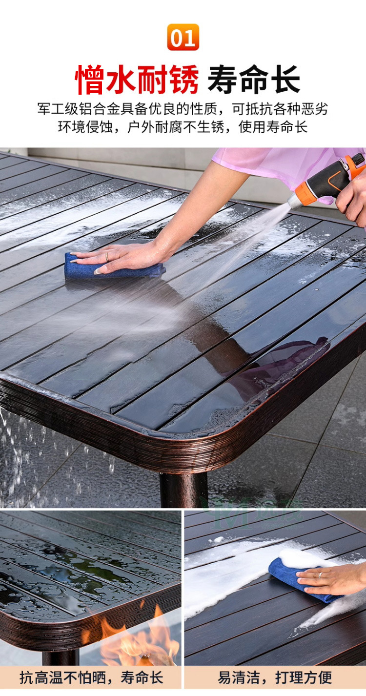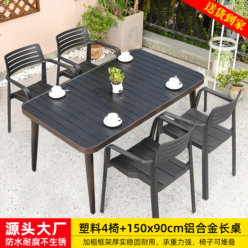 • 의자 4개 + 150x90cm Xiangyun 알루미늄 판 각인 긴 테이블 [모두 알루미늄 - 녹슬지 않음] 선택