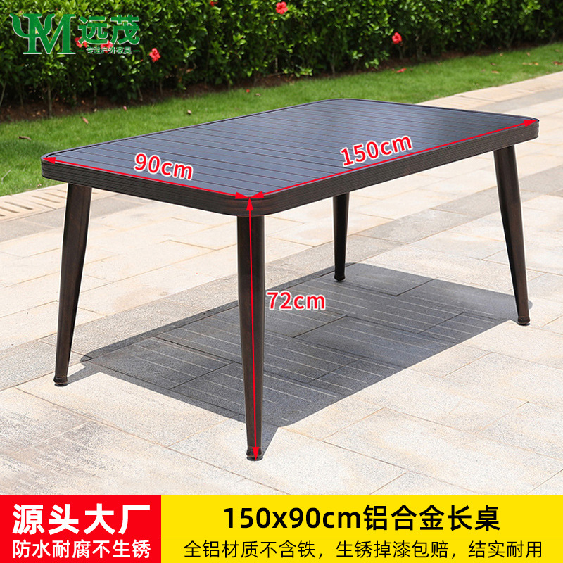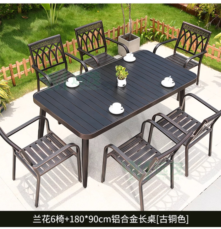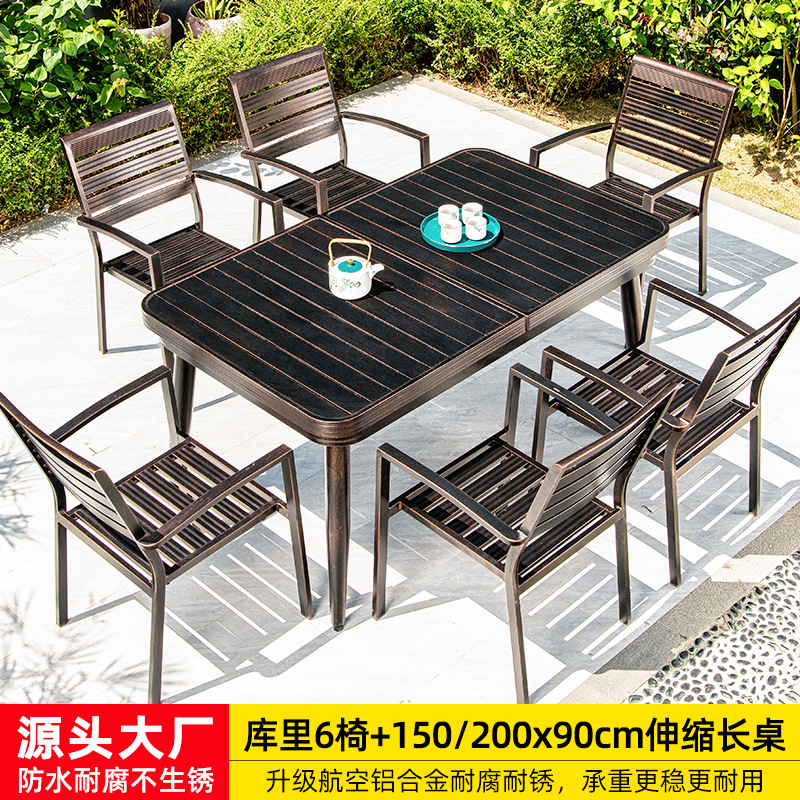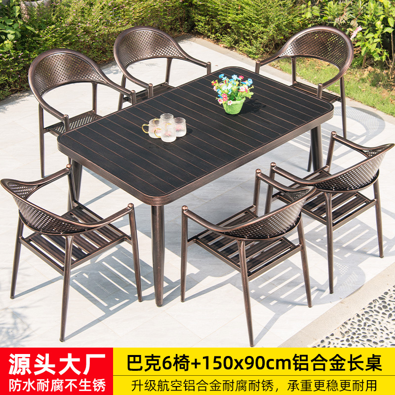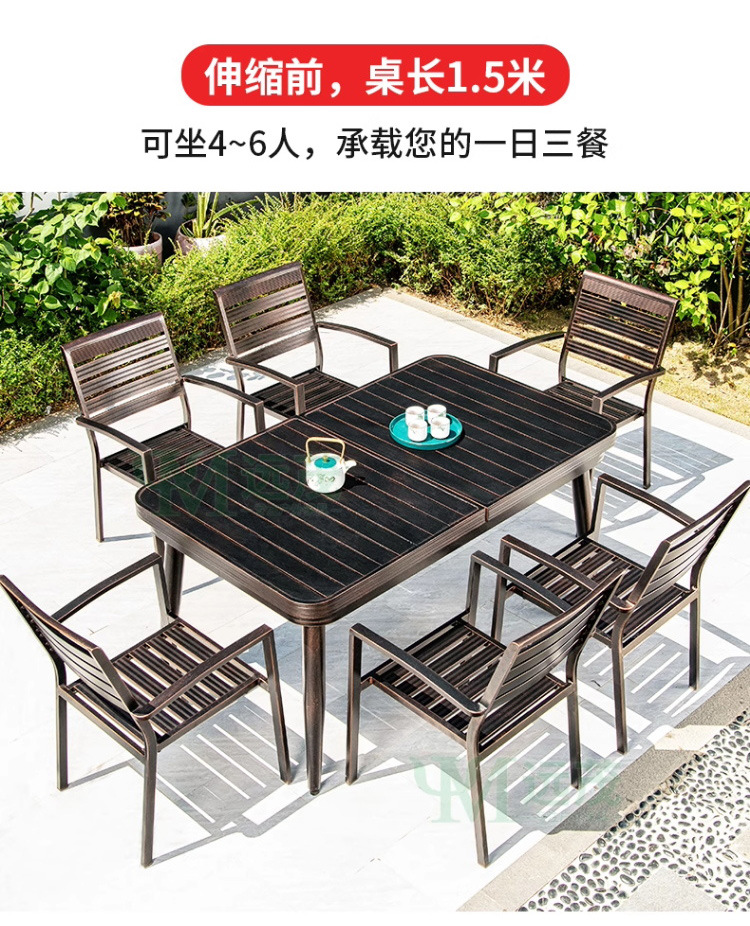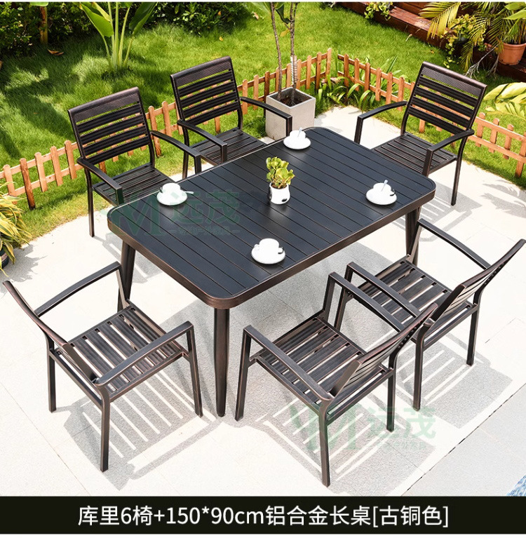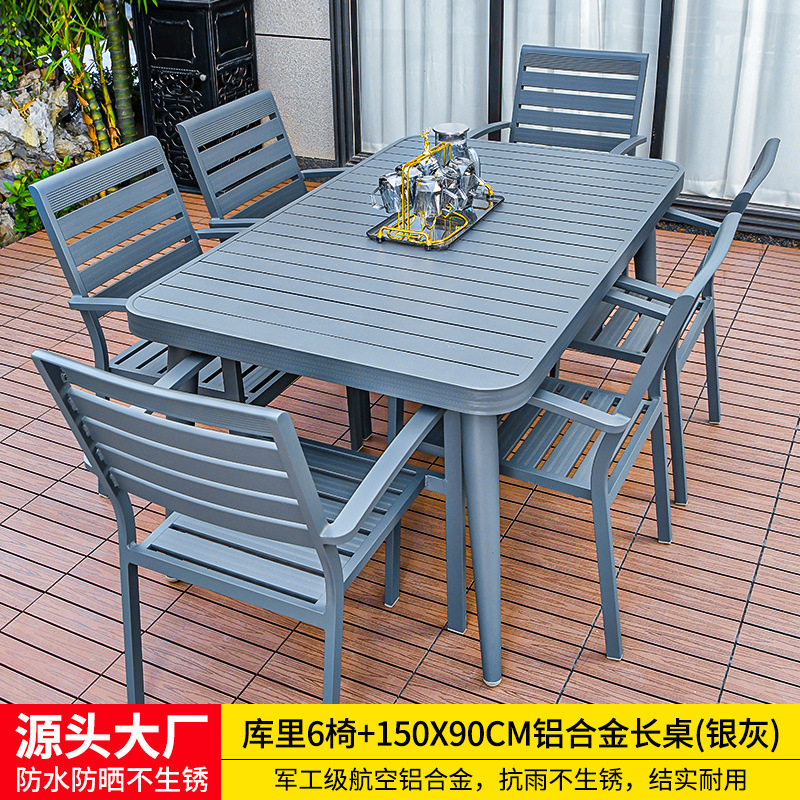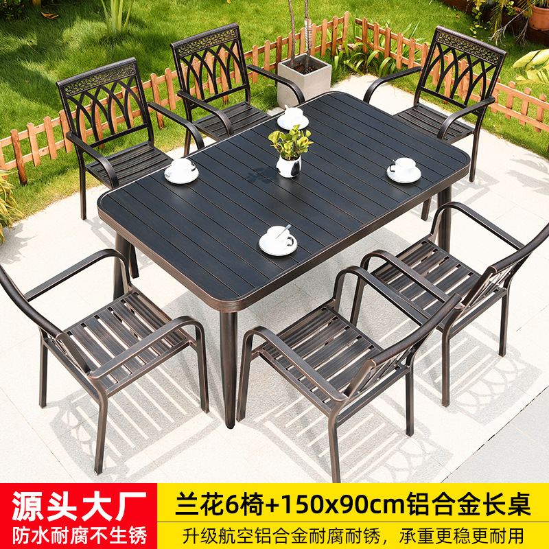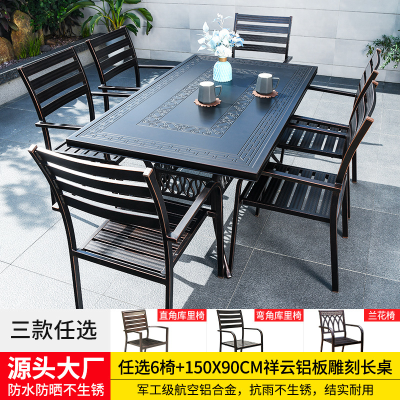 • 의자 6개 + 150x90cm Xiangyun 알루미늄 판 각인 긴 테이블 [모두 알루미늄 - 녹슬지 않음]
