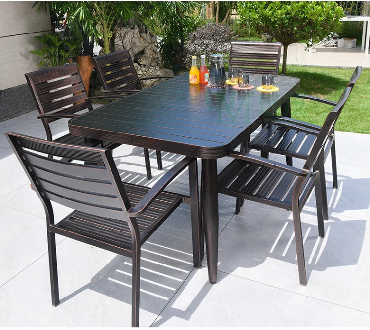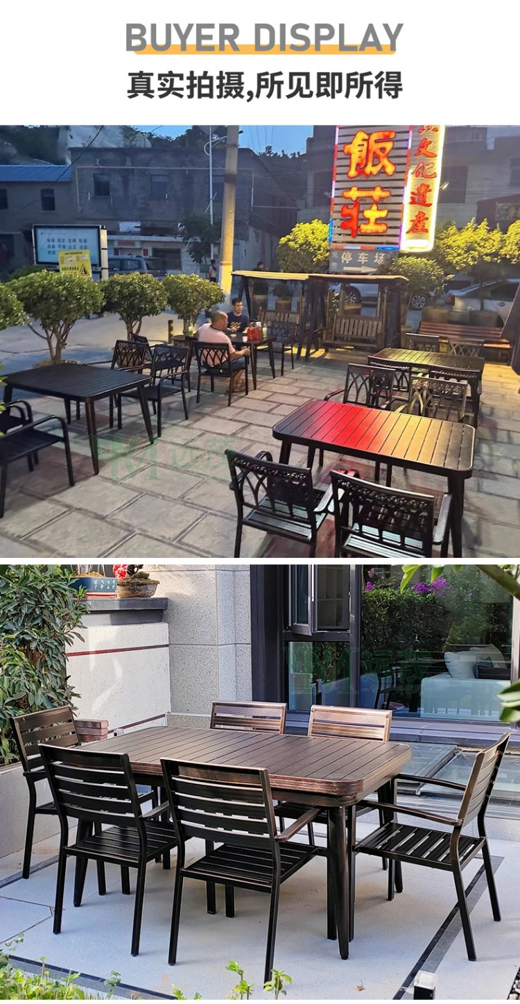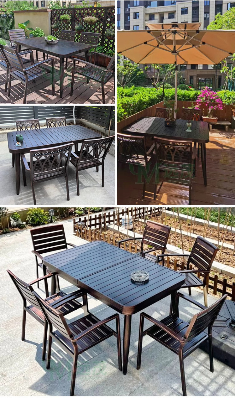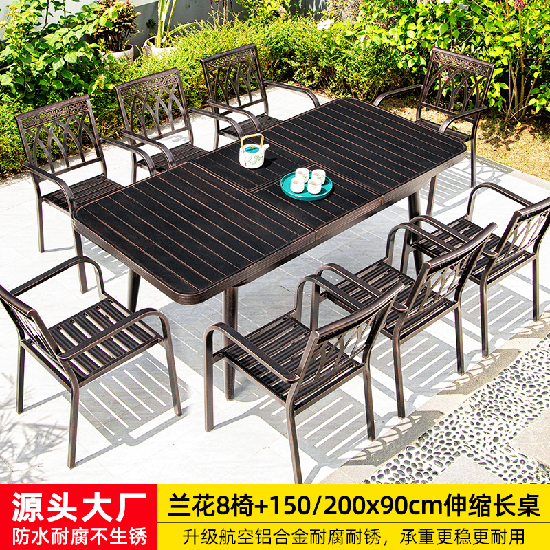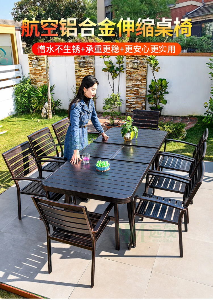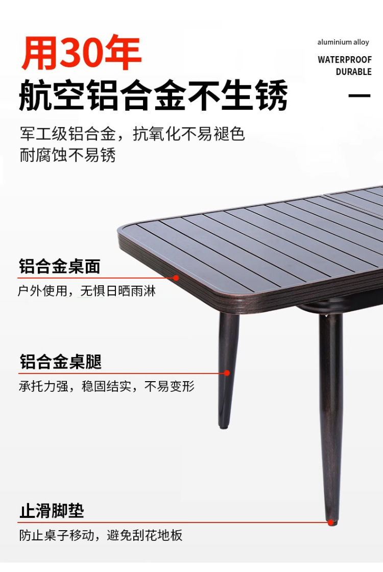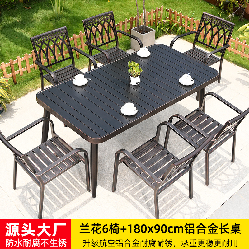 • 의자 6개 + 150x90cm Xiangyun 알루미늄 판 각인 긴 테이블 [모두 알루미늄 - 녹슬지 않음]