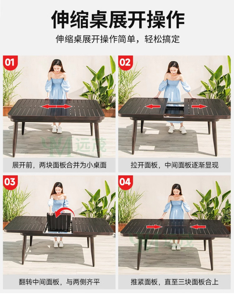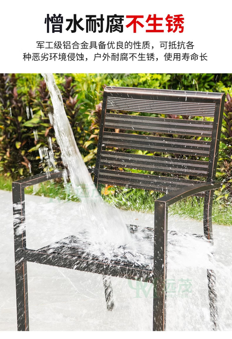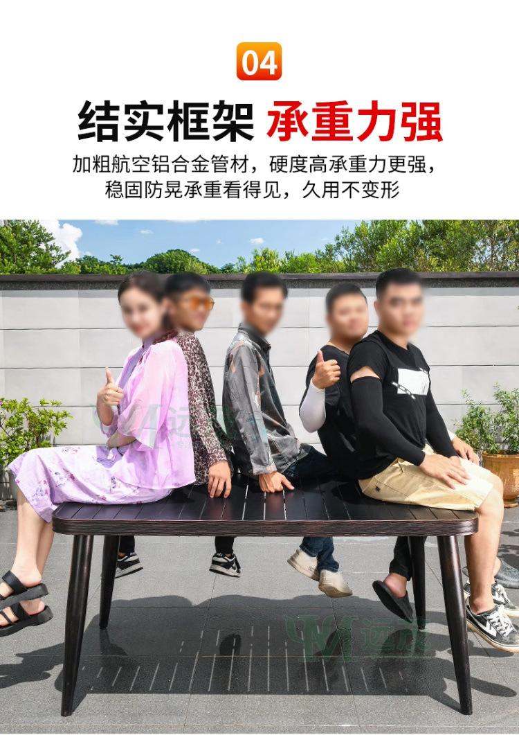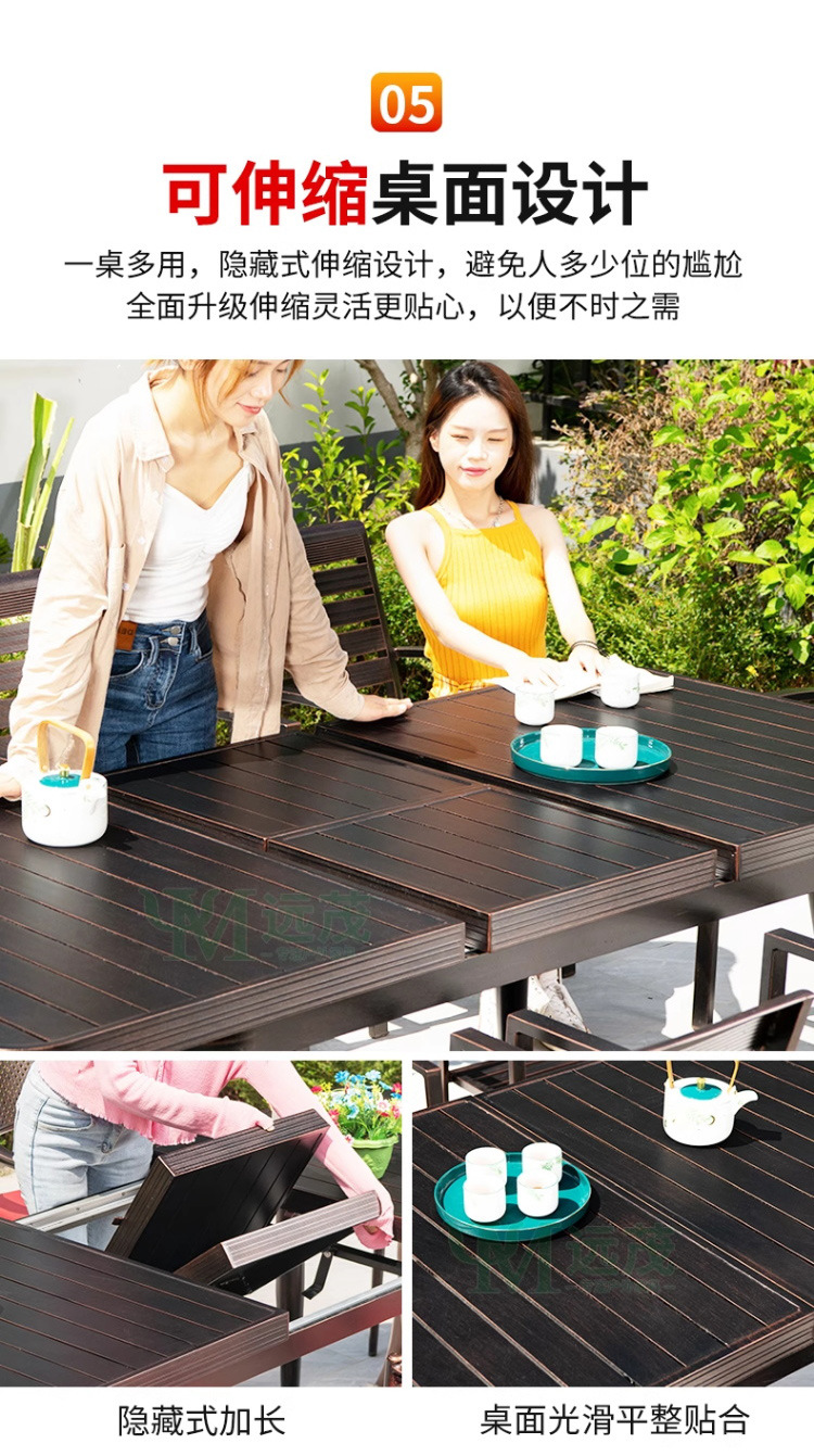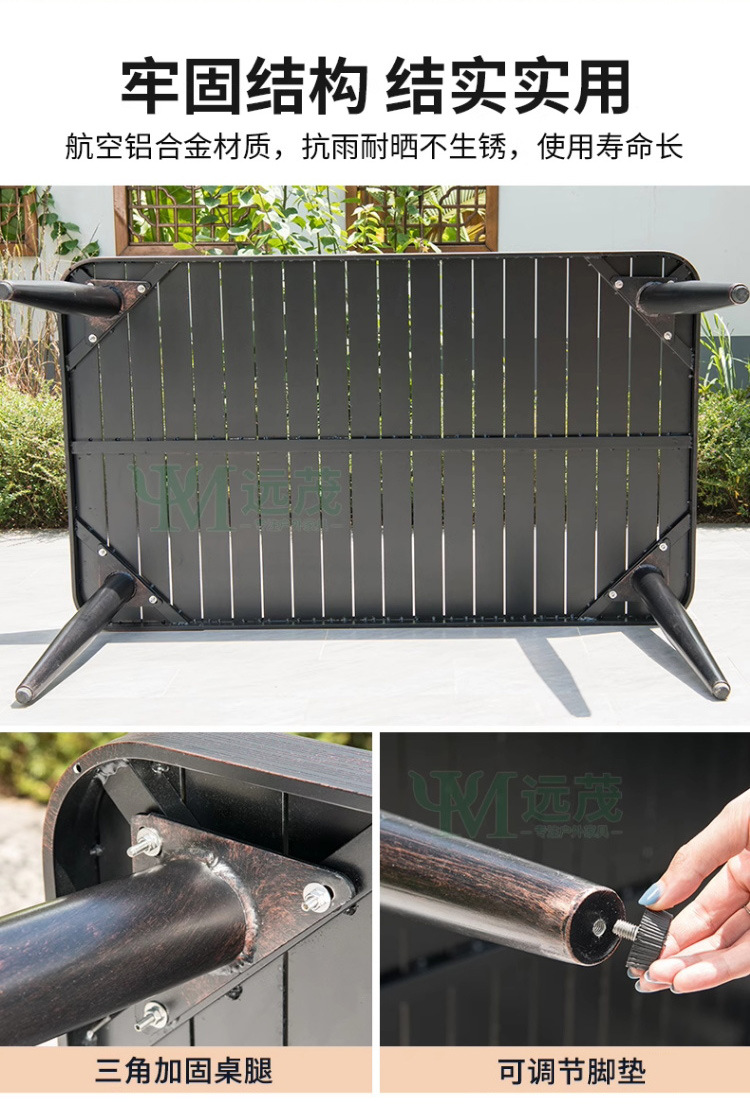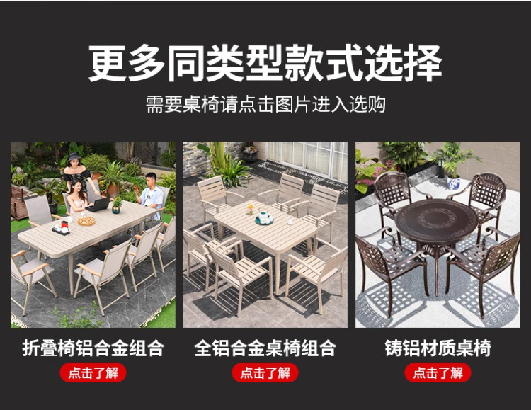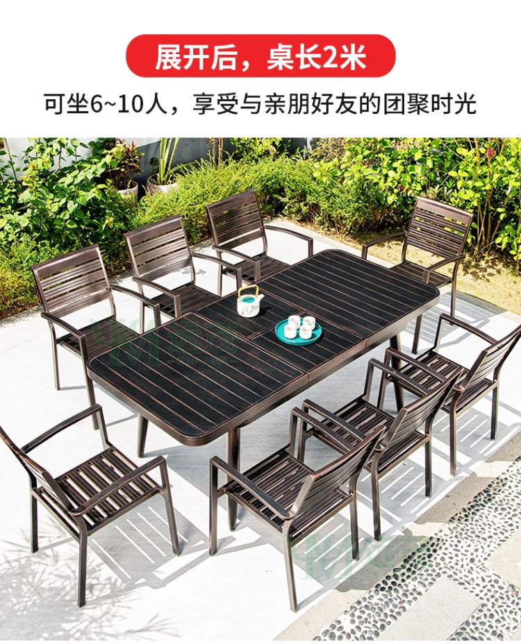 • 의자 6개 + 150x90cm Xiangyun 알루미늄 판 각인 긴 테이블 [모두 알루미늄 - 녹슬지 않음]