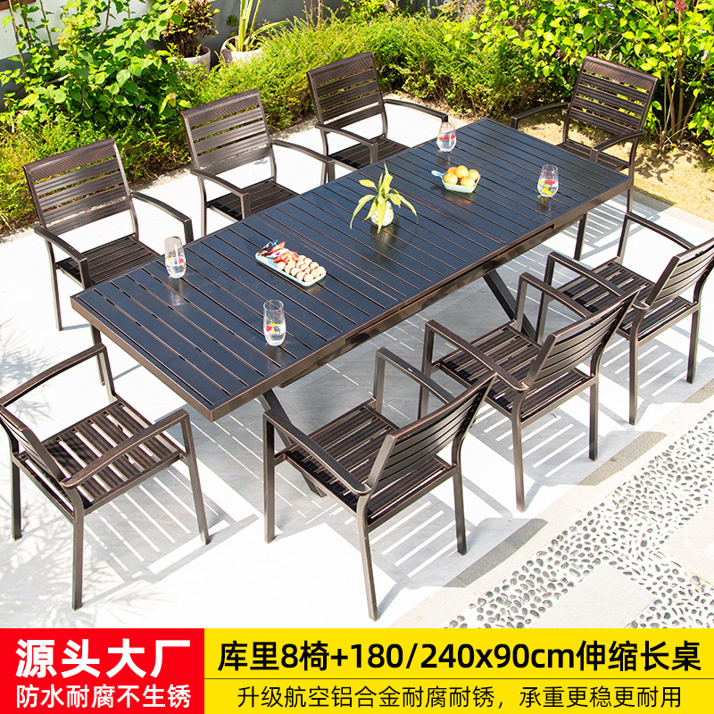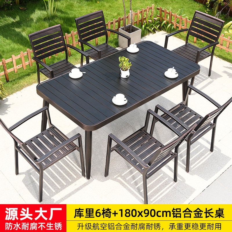 • 카레 의자 6개 + 180x90cm 알루미늄 합금 롱 테이블 [전체 알루미늄 - 녹슬지 않음]