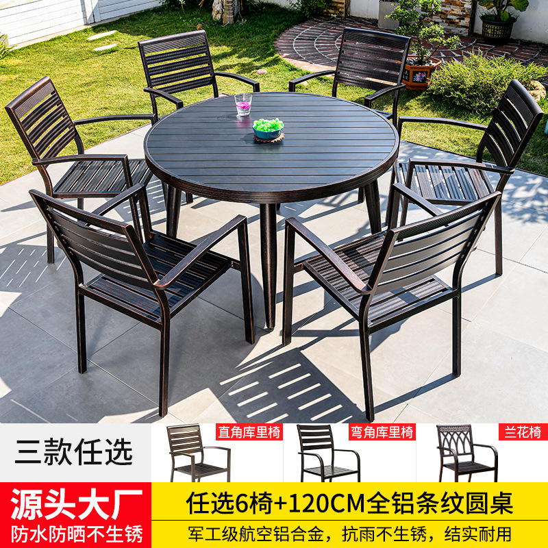 • 의자 6개 + 120cm 줄무늬 원형 테이블 선택 [전체 알루미늄 - 녹슬지 않음]