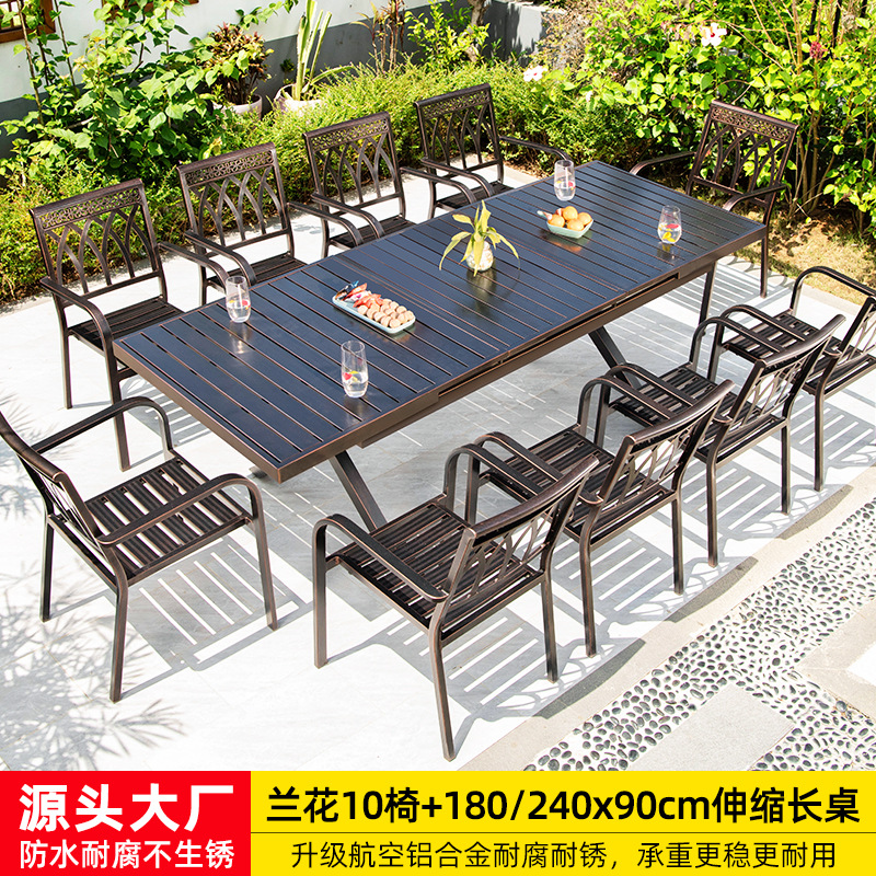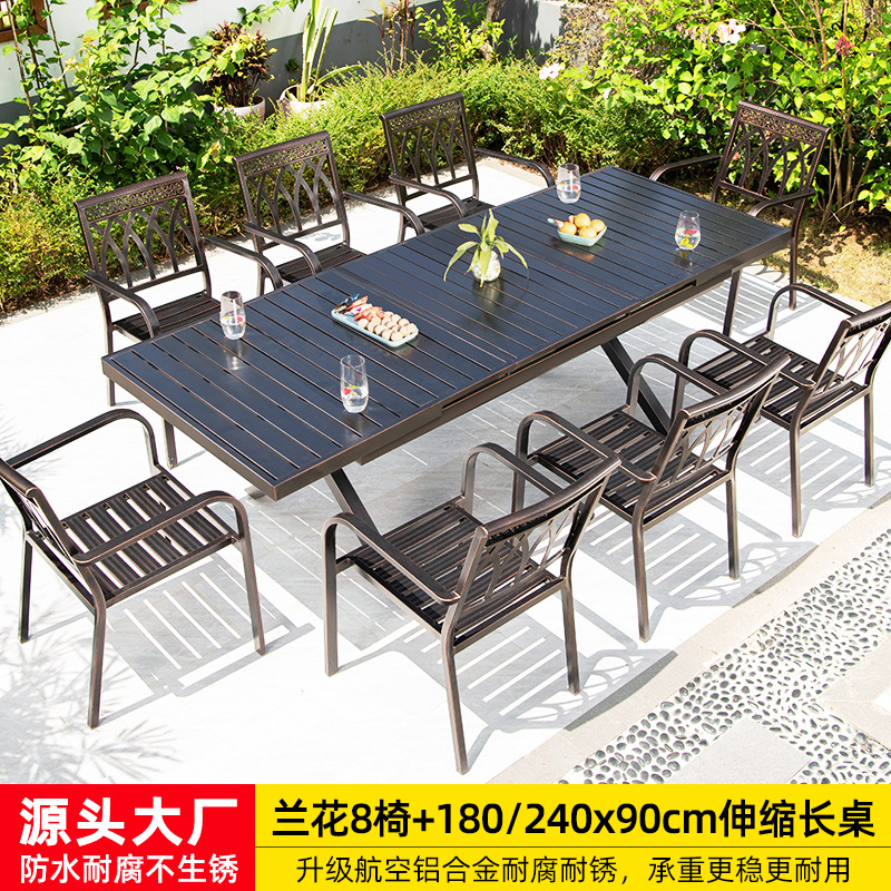 • 오키드 의자 6개 + 180x90cm 알루미늄 합금 롱 테이블 [전체 알루미늄 - 녹슬지 않음]