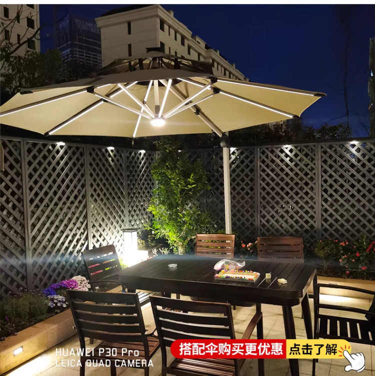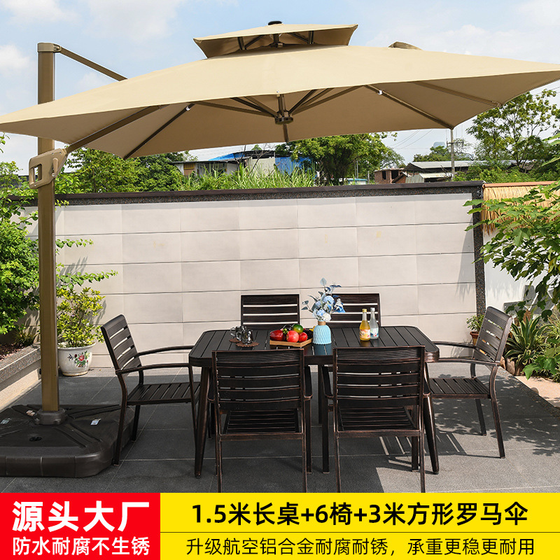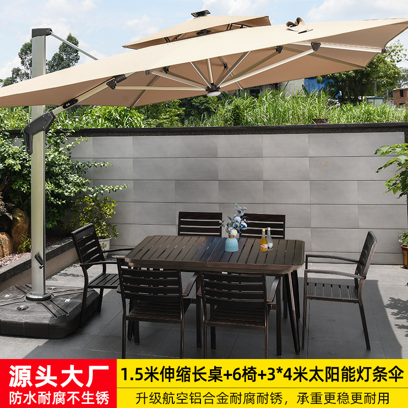 • 전체 알루미늄(긴 테이블 1.5m개 + 의자 6개) + 정사각형 6세대 태양광 라이트 우산 3m개(물탱크 180kg개 포함)