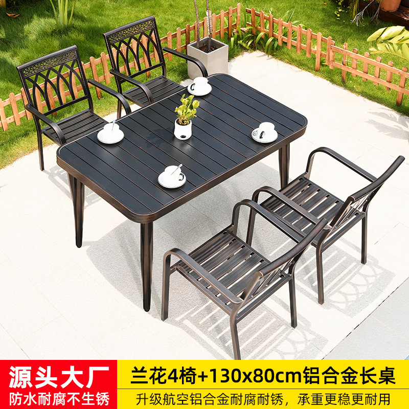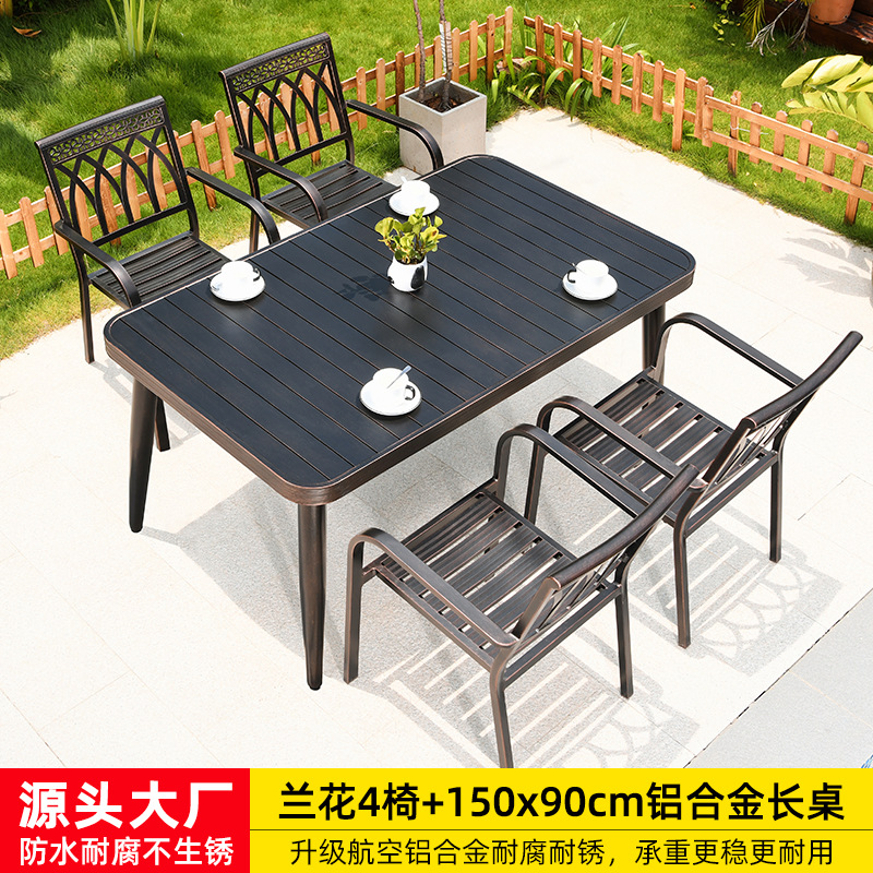 • 난초 의자 4개 + 150x90cm 알루미늄 합금 긴 테이블 [모두 알루미늄 - 녹슬지 않음]