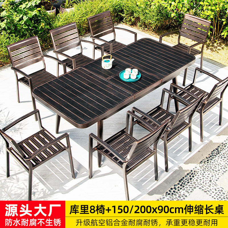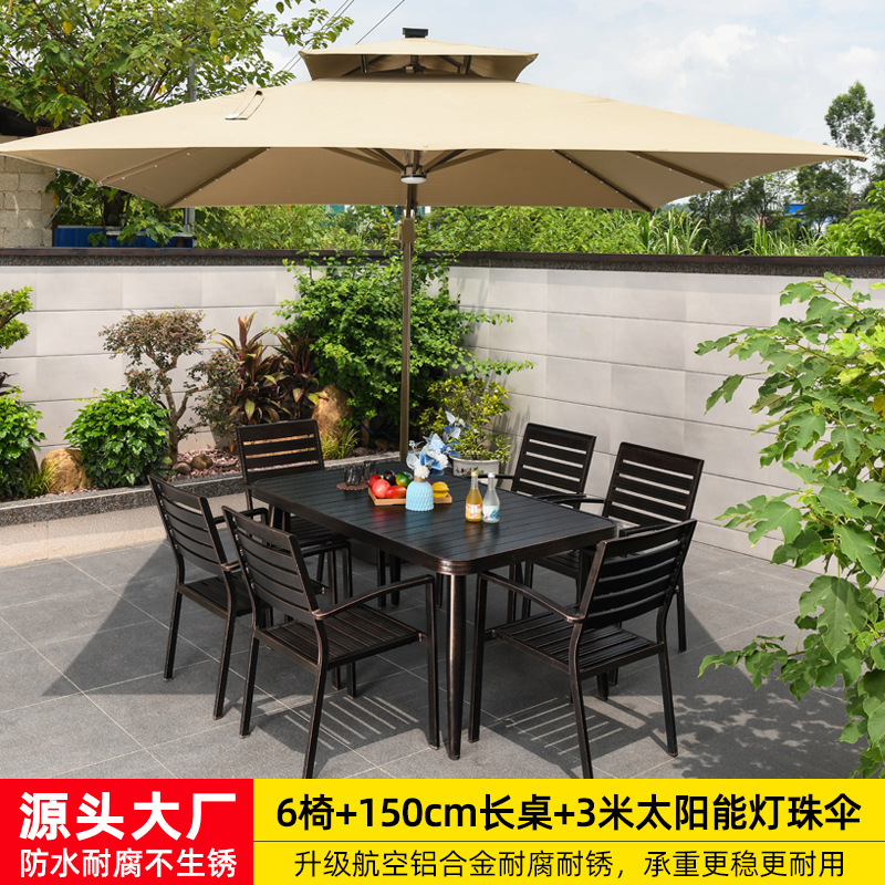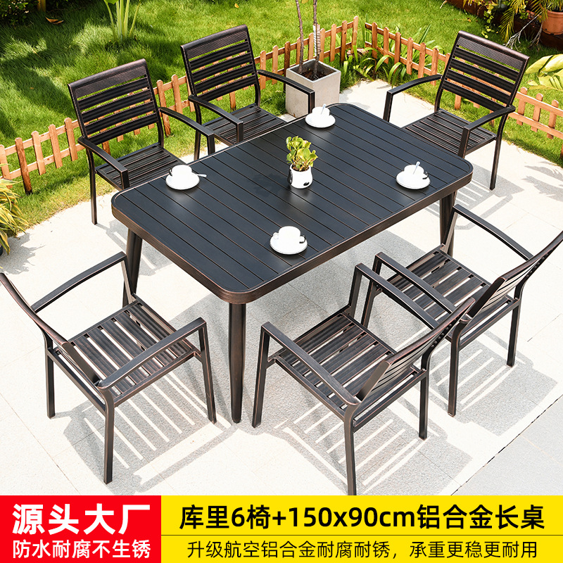 • 카레 의자 6개 + 150x90cm 알루미늄 합금 롱 테이블 [전체 알루미늄 - 녹슬지 않음]