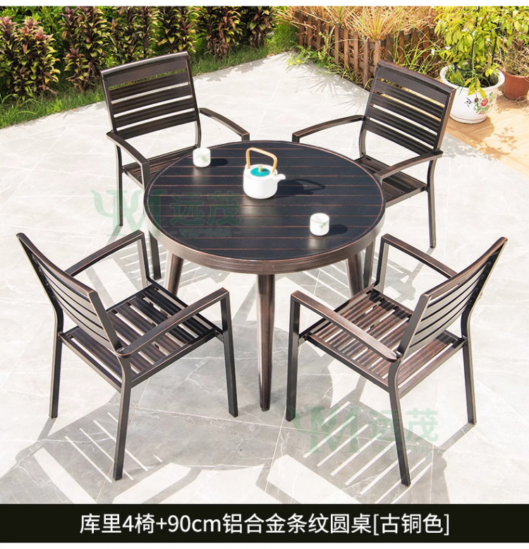 • 의자 4개 + 90cm 줄무늬 원형 테이블 선택 [전체 알루미늄 - 녹슬지 않음]