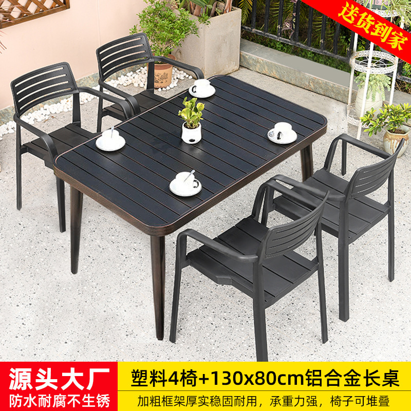 • 플라스틱 의자 4개 + 130x80cm 알루미늄 합금 긴 테이블