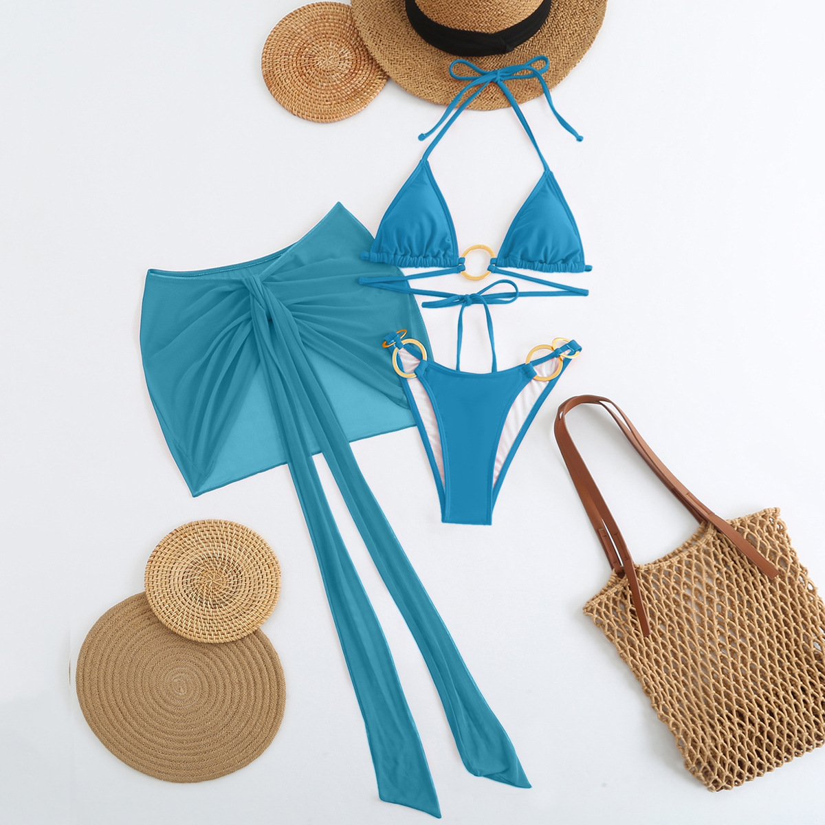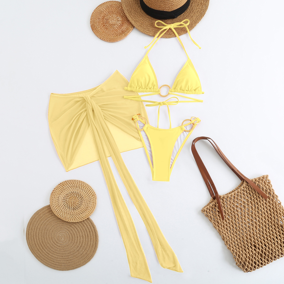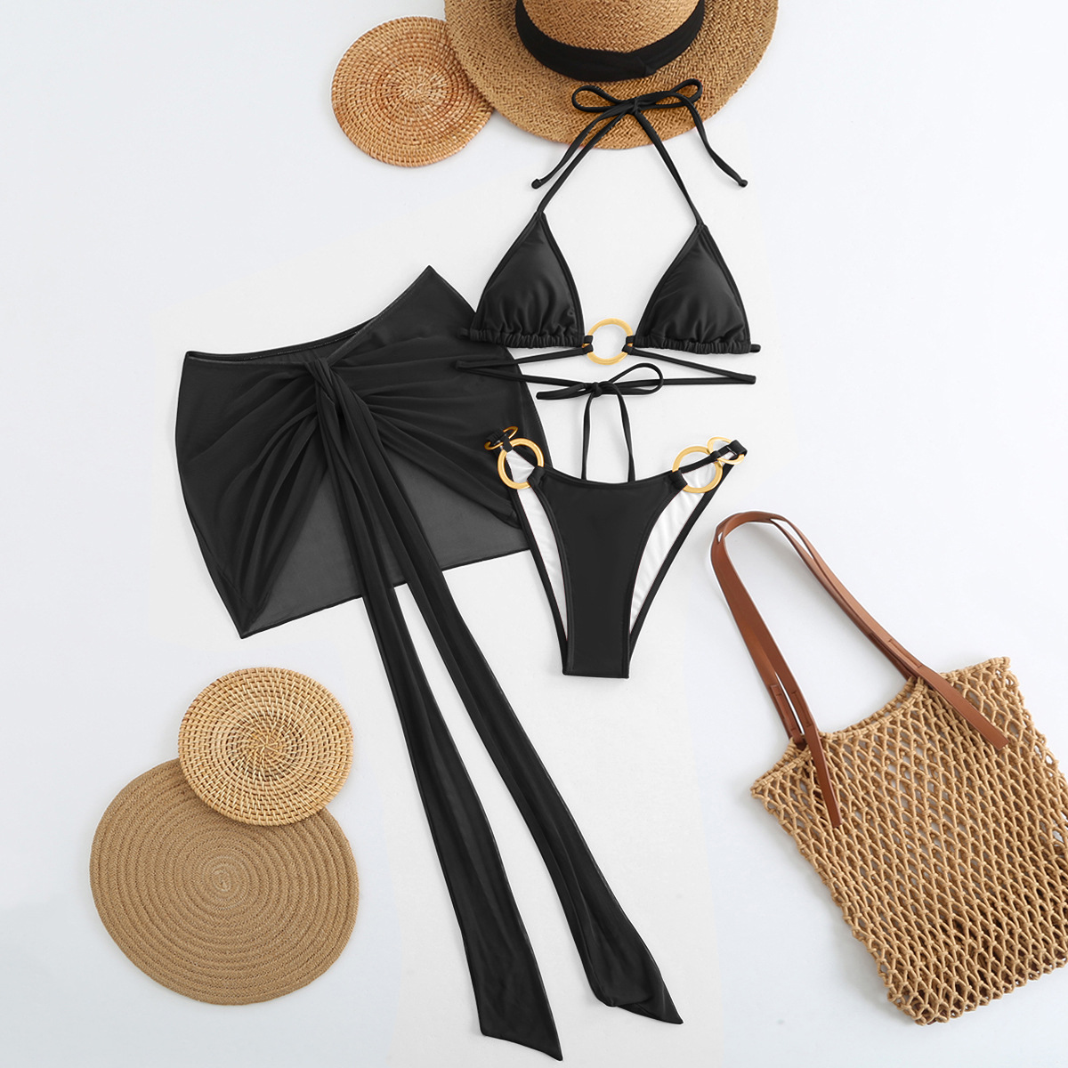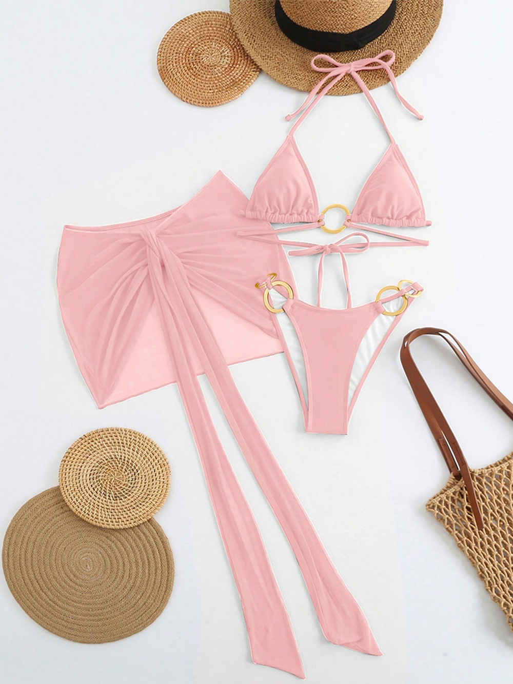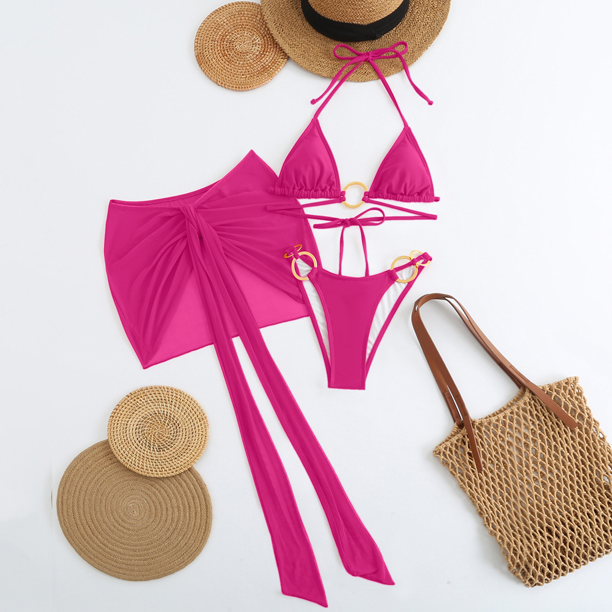 Spot 2025 새로운 패션 섹시한 솔리드 컬러 3 피스 비키니 비키니 수영복 여성 핫 스타일 핫 판매 수영복