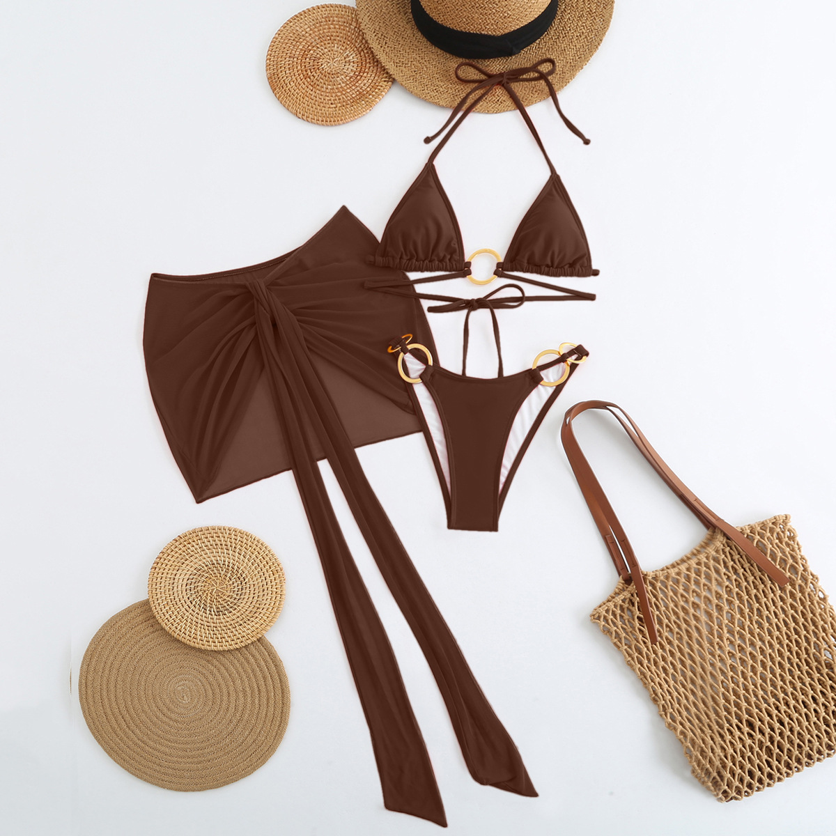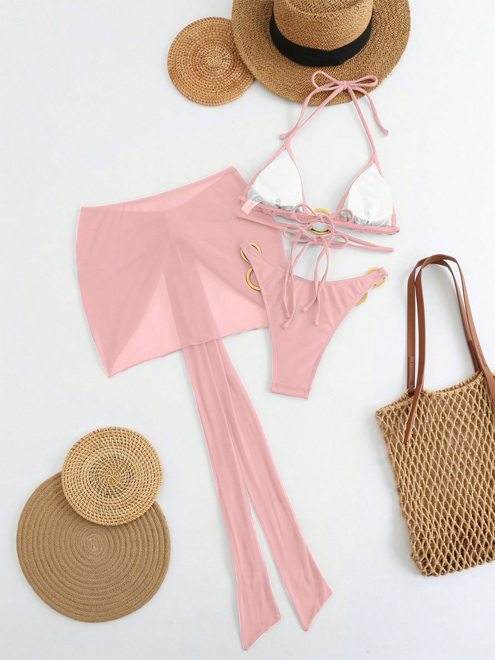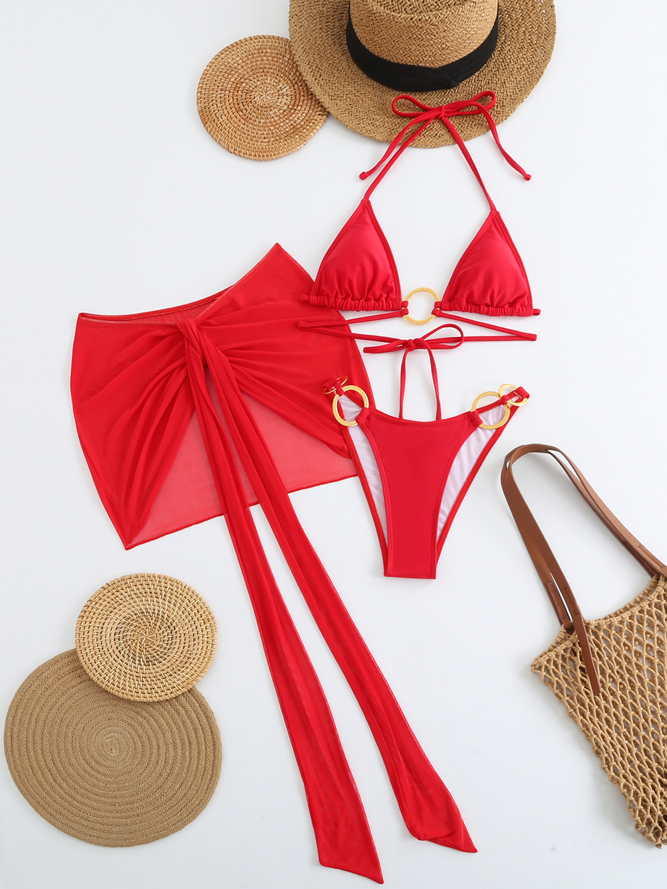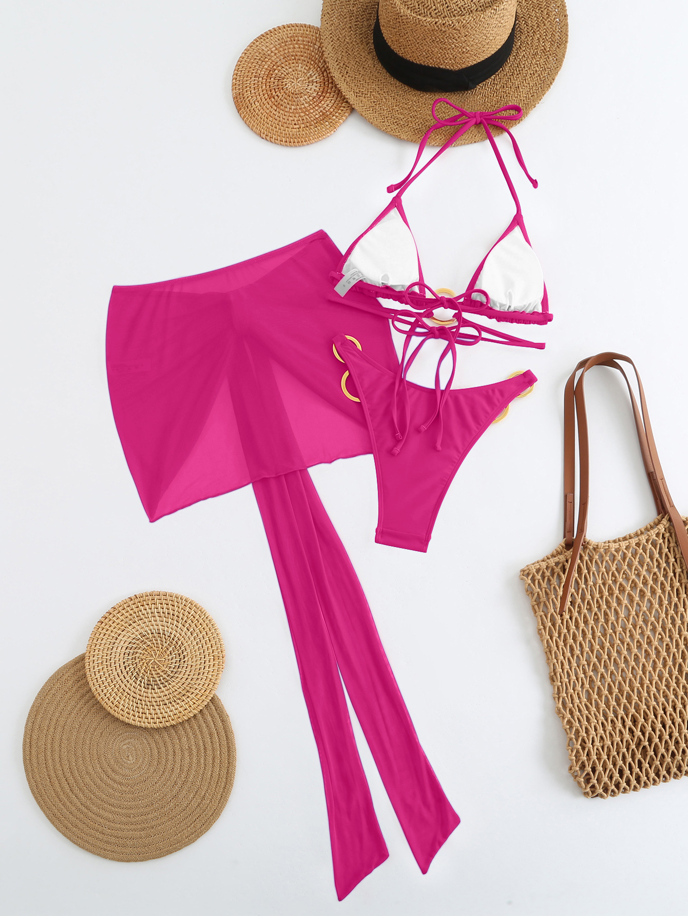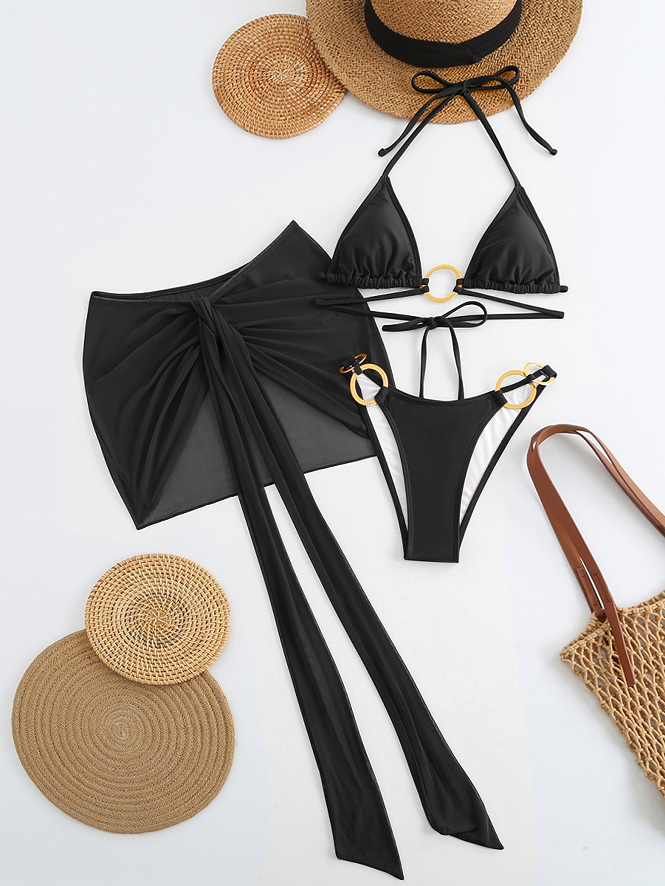 Spot 2025 새로운 패션 섹시한 솔리드 컬러 3 피스 비키니 비키니 수영복 여성 핫 스타일 핫 판매 수영복