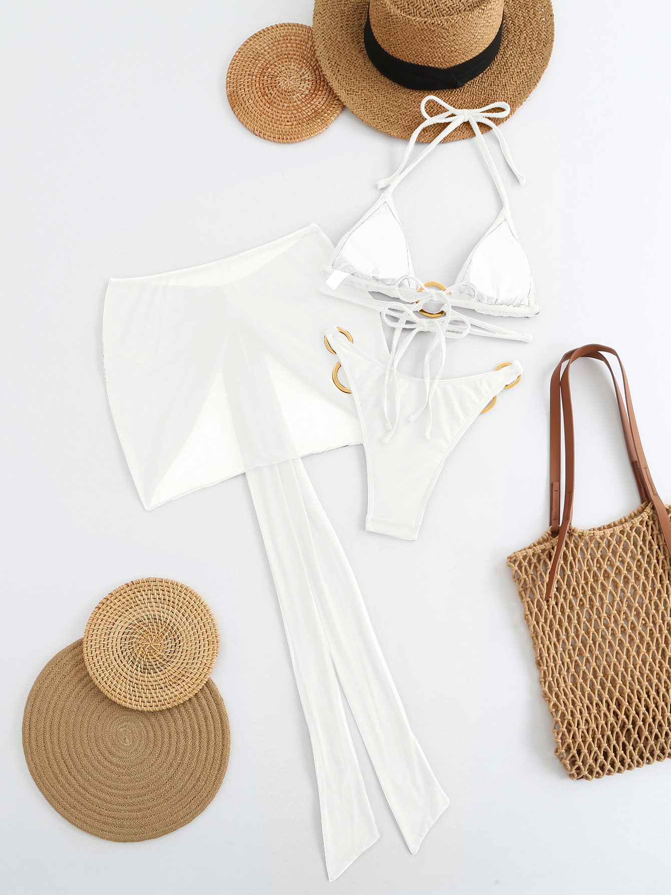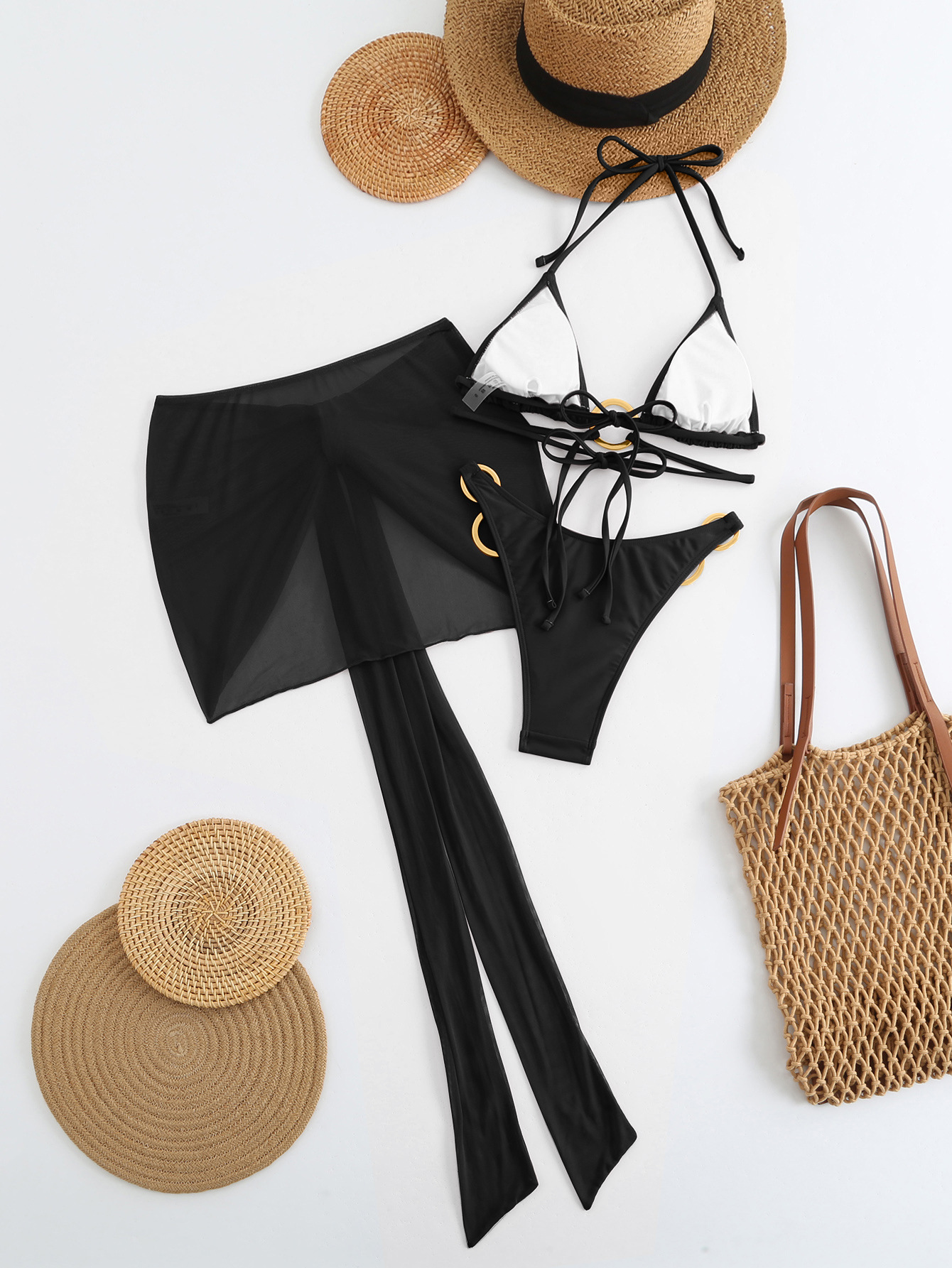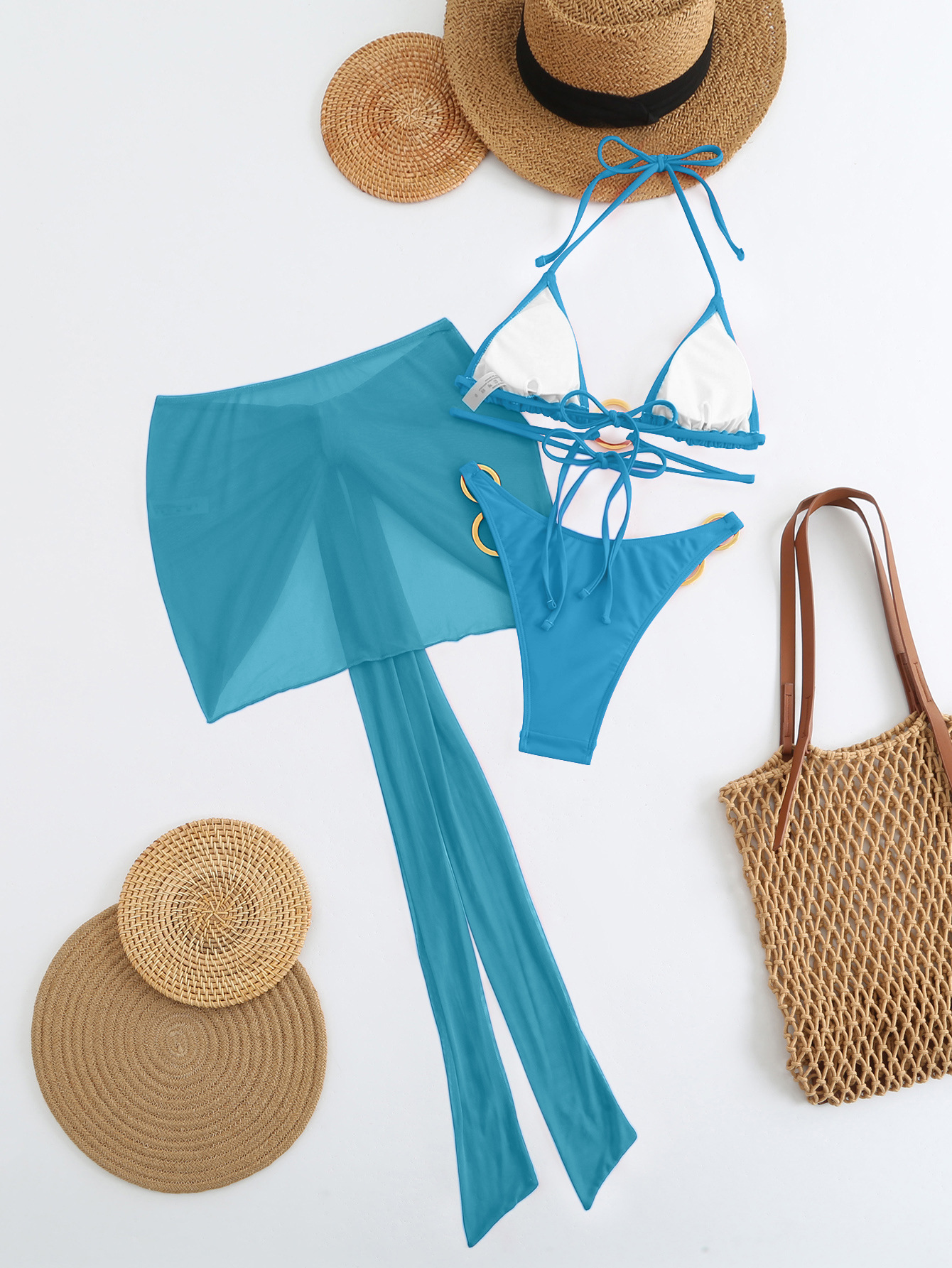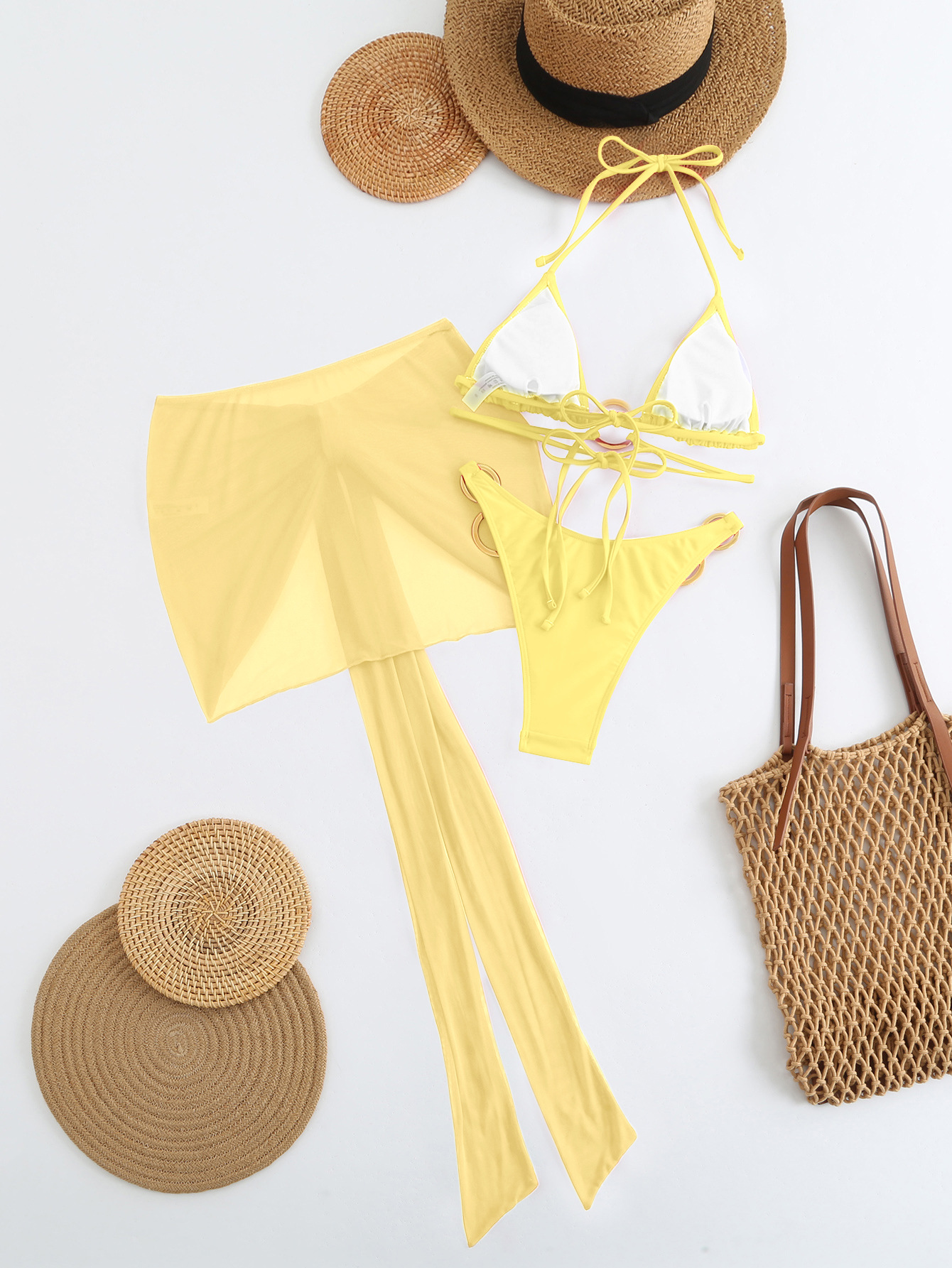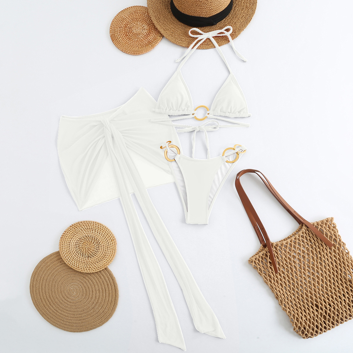 Spot 2025 새로운 패션 섹시한 솔리드 컬러 3 피스 비키니 비키니 수영복 여성 핫 스타일 핫 판매 수영복