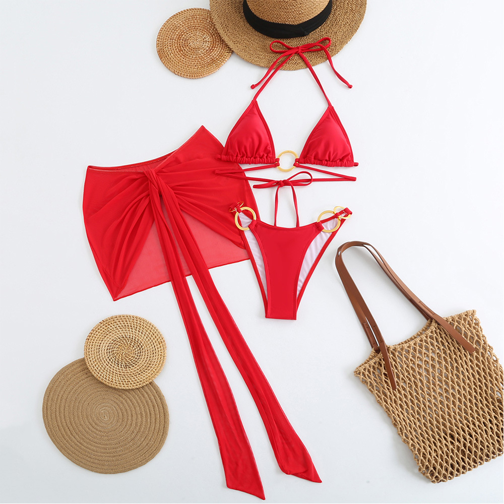 Spot 2025 새로운 패션 섹시한 솔리드 컬러 3 피스 비키니 비키니 수영복 여성 핫 스타일 핫 판매 수영복스토어 가기