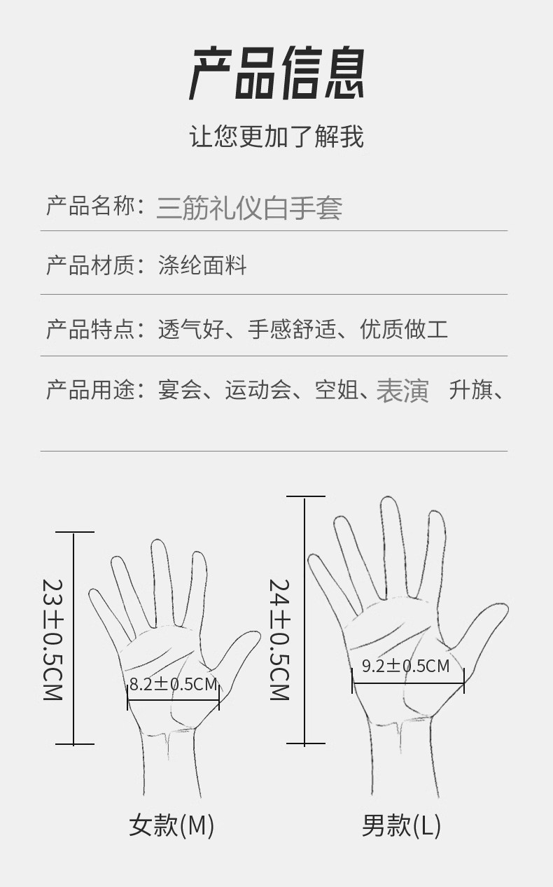 검열 공연을 위한 3줄 예절용 흰색 장갑, 남성 및 여성을 위한 보안 운전, 남성 및 여성을 위한 커스텀 서비스 및 보안 공연, 여름 통기성스토어 가기