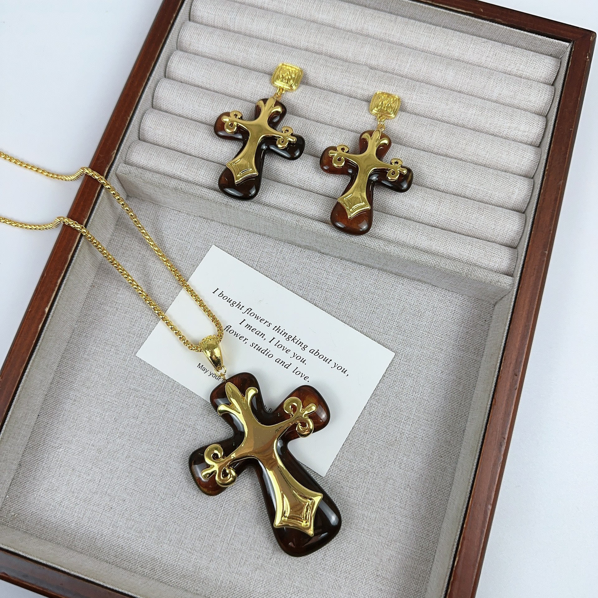 샌달 우드 크로스 귀걸이 목걸이 라운드 하트 레트로 라이트 럭셔리 블랙 골드 귀걸이 독특한 디자인 높은 패션 액세서리
