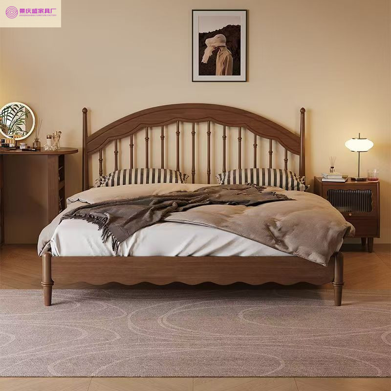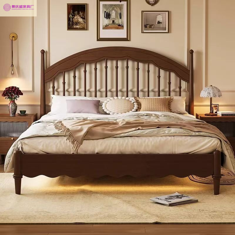모든 단단한 나무 중세 스타일 마스터 침실 아름다운 프랑스 복고풍 더블 침대 새로운 중국 스타일 호두 색상 하프 킹 침대