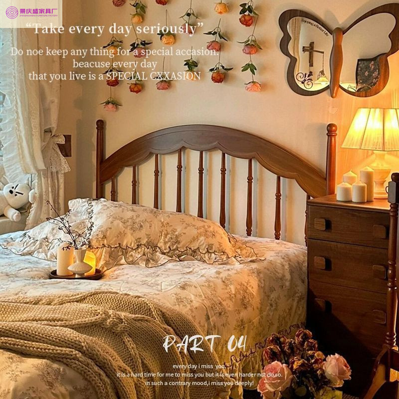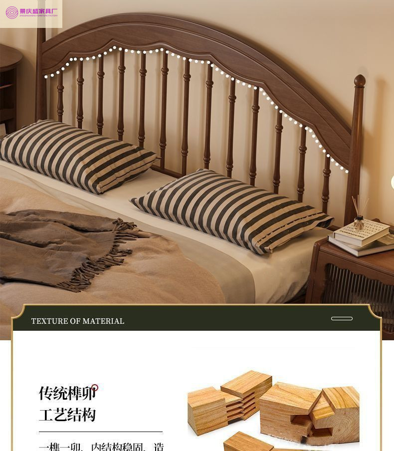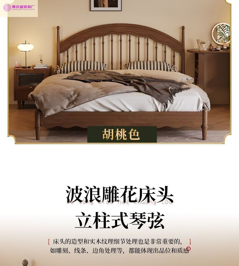 모든 단단한 나무 중세 스타일 마스터 침실 아름다운 프랑스 복고풍 더블 침대 새로운 중국 스타일 호두 색상 하프 킹 침대스토어 가기