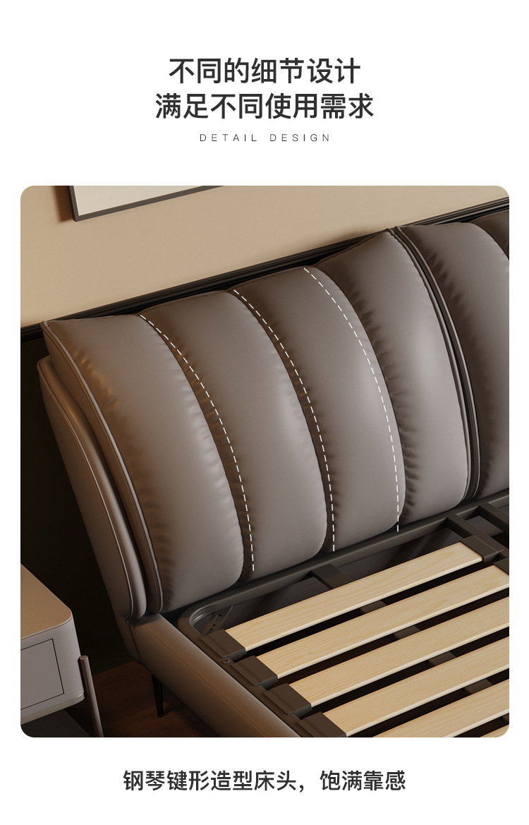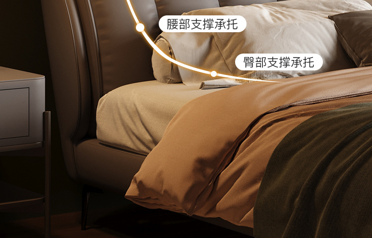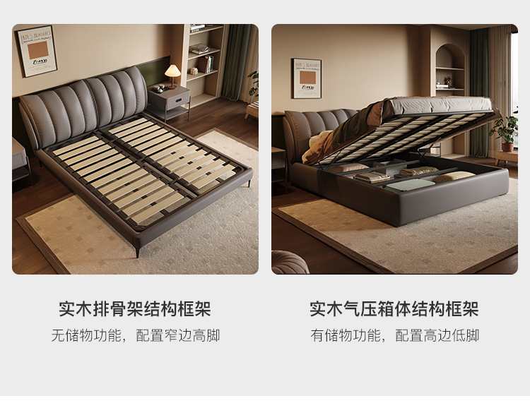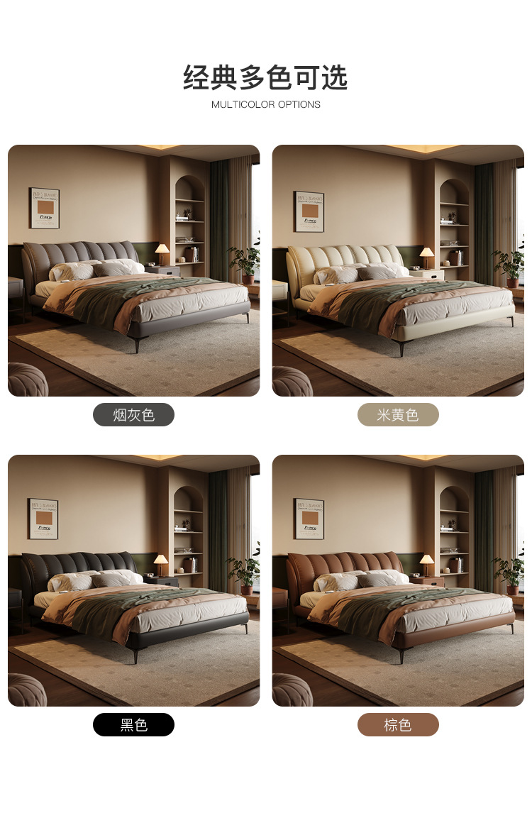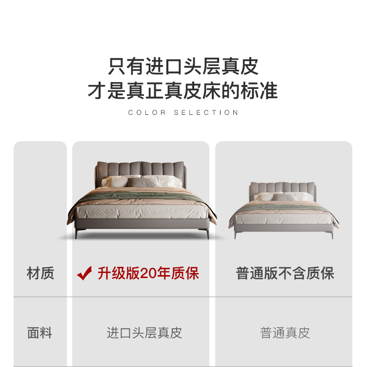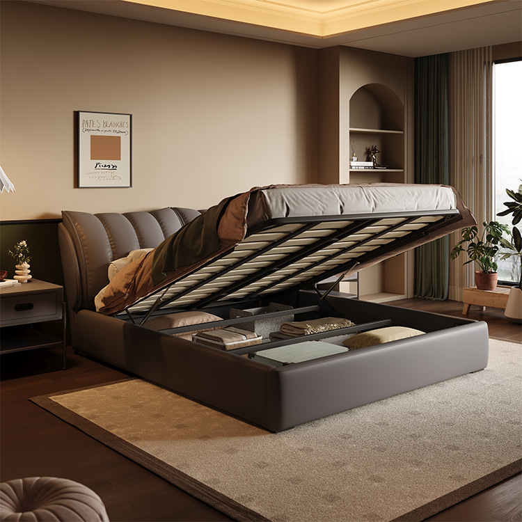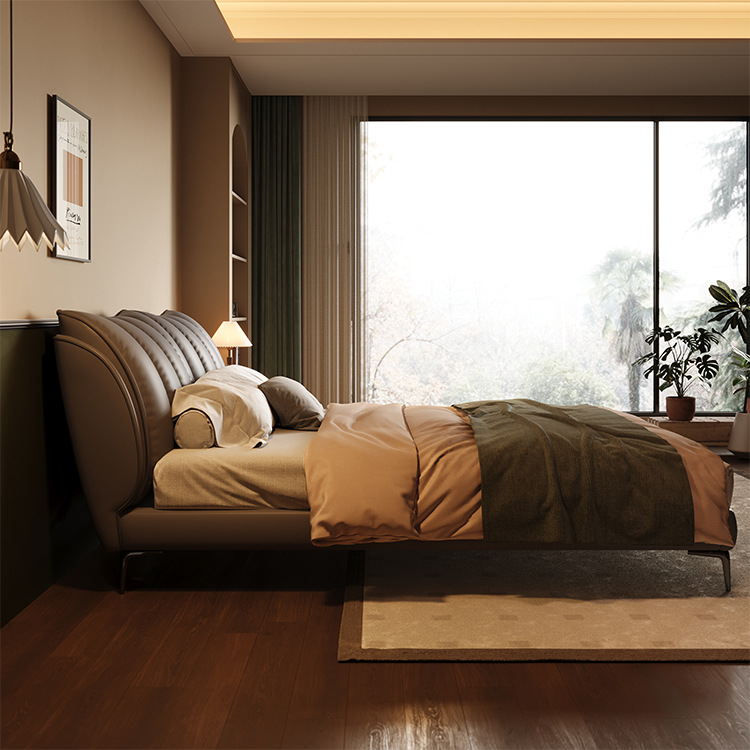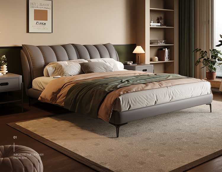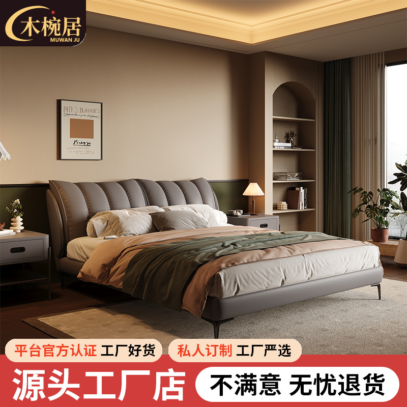 이탈리아 미니멀리스트 가죽 침대 2025 새로운 웨딩 침대 마스터 침실 1 층 소가죽 대형 침대 현대적인 단순한 높은 발 더블 침대스토어 가기