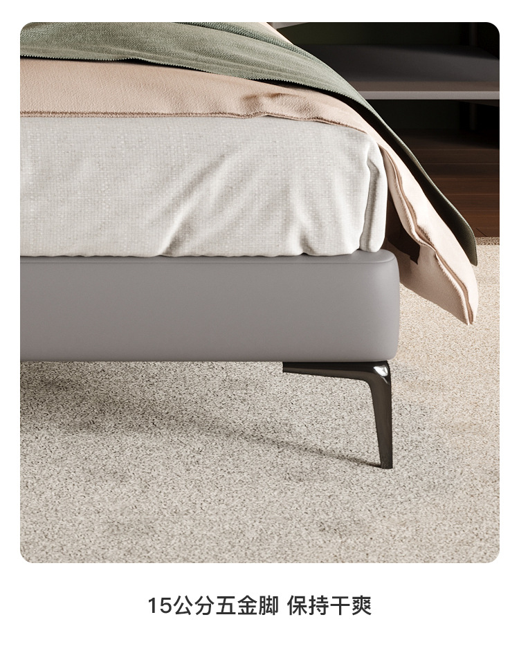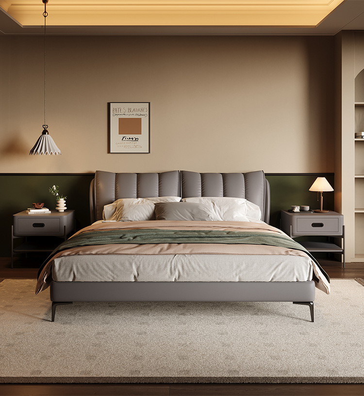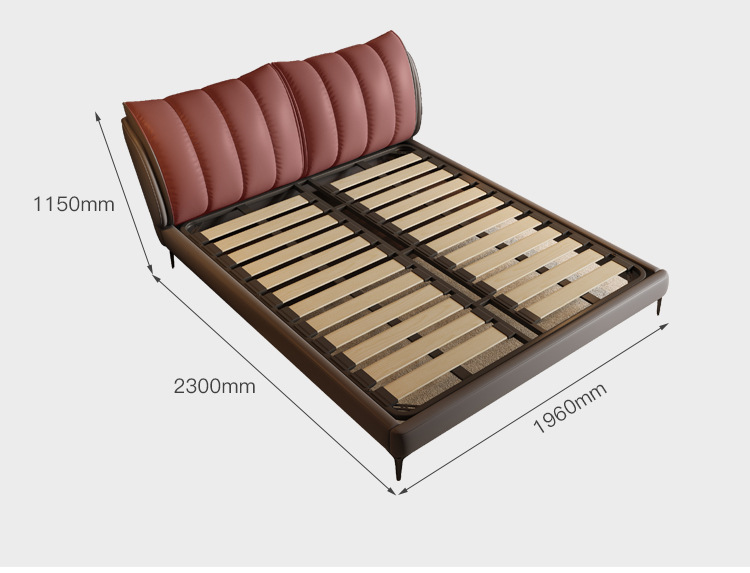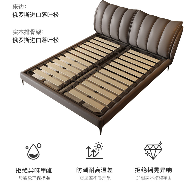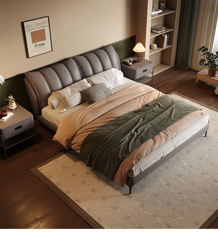 이탈리아 미니멀리스트 가죽 침대 2025 새로운 웨딩 침대 마스터 침실 1 층 소가죽 대형 침대 현대적인 단순한 높은 발 더블 침대