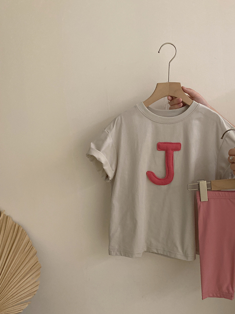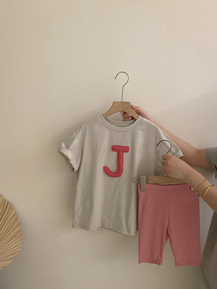 여자 2025 편지 입체 반팔 티셔츠 유행 브랜드 한국식 여름 새로운 올매치 요가 바지 투피스 세트스토어 가기
