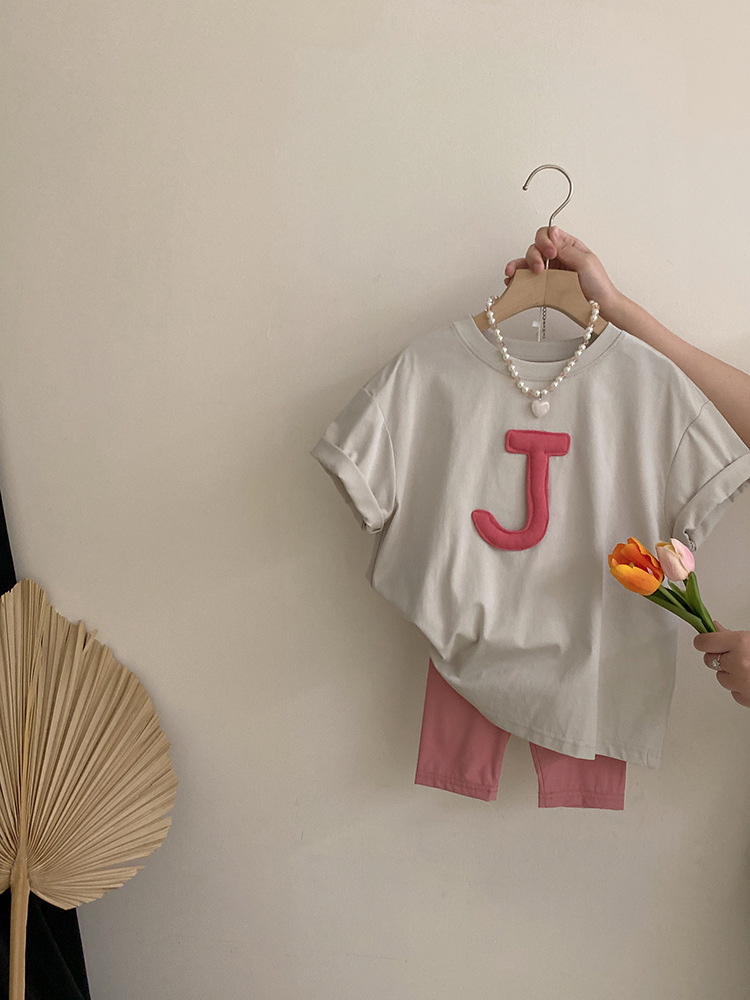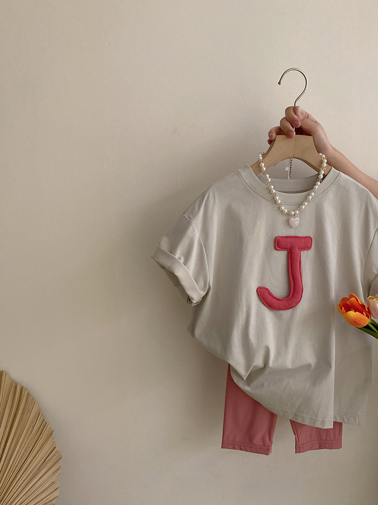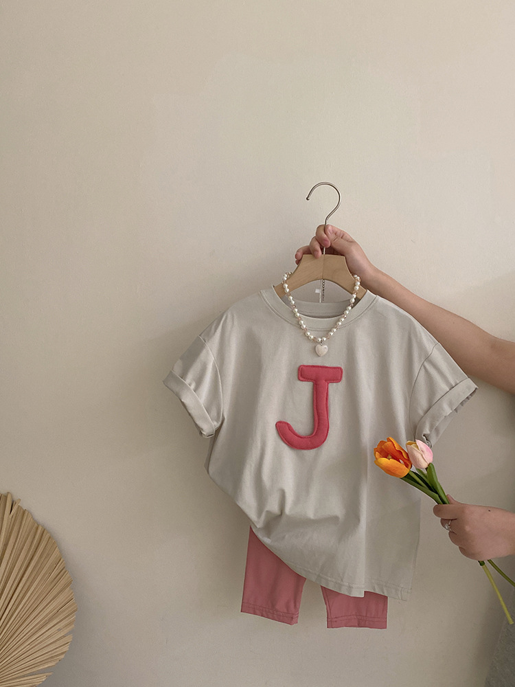 여자 2025 편지 입체 반팔 티셔츠 유행 브랜드 한국식 여름 새로운 올매치 요가 바지 투피스 세트