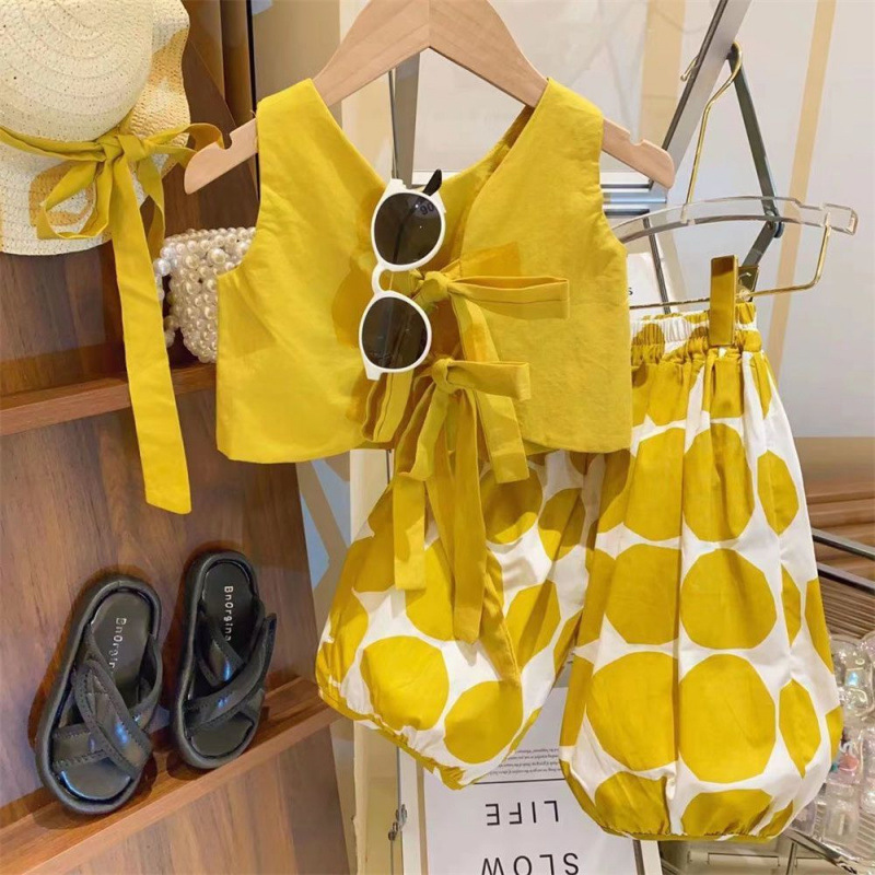 블루머 양복 투피스 새로운 여름 목가적 스타일 양복 어린 소녀 패션 모기 방지 바지 조끼 양복 여름스토어 가기