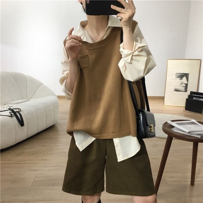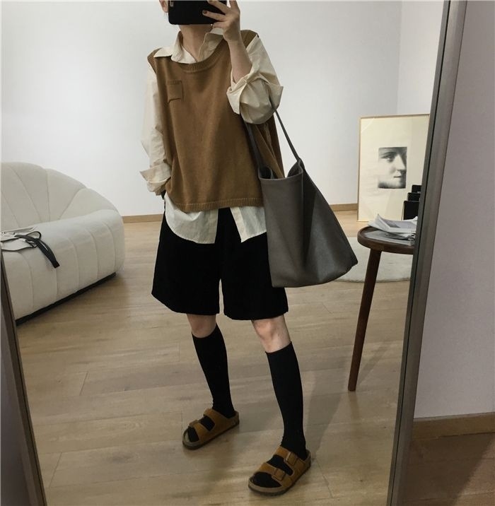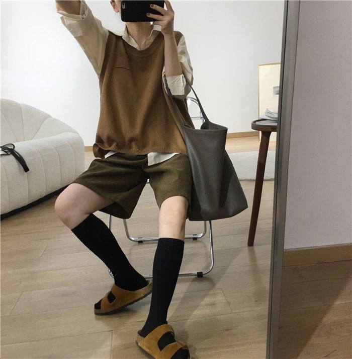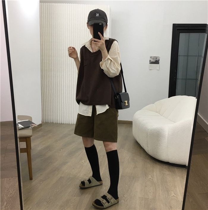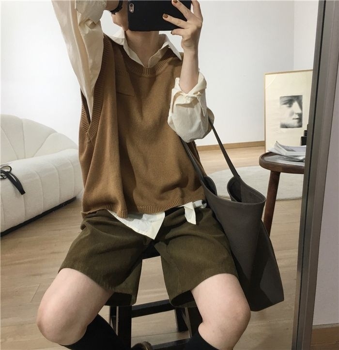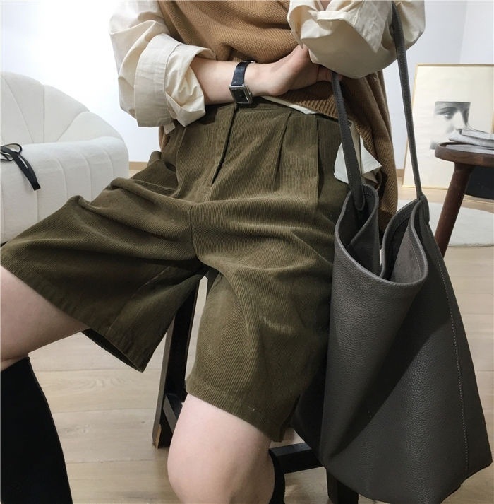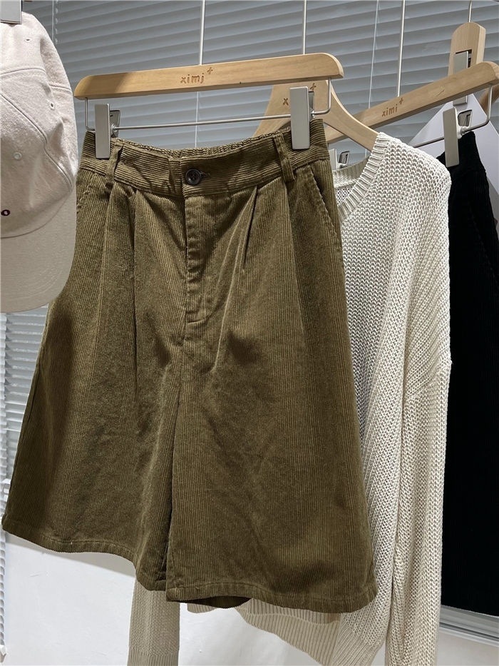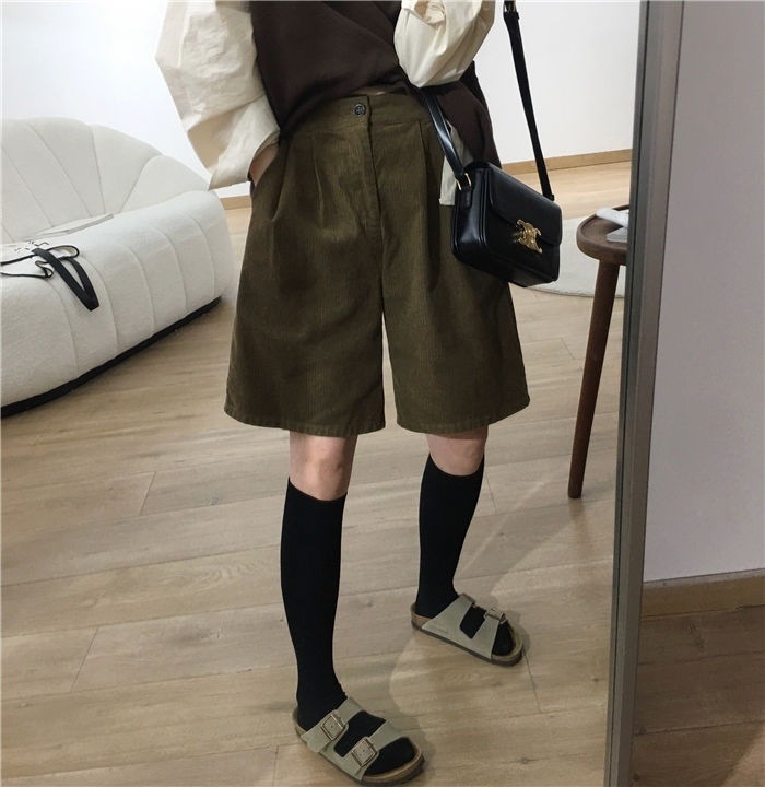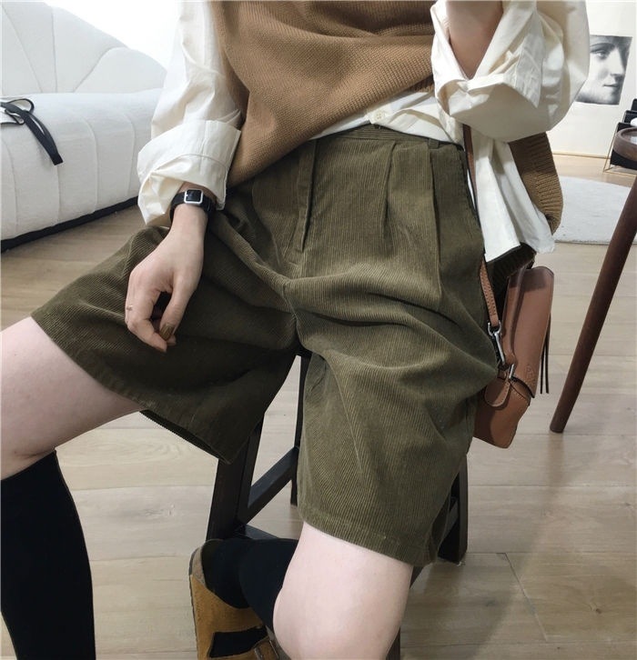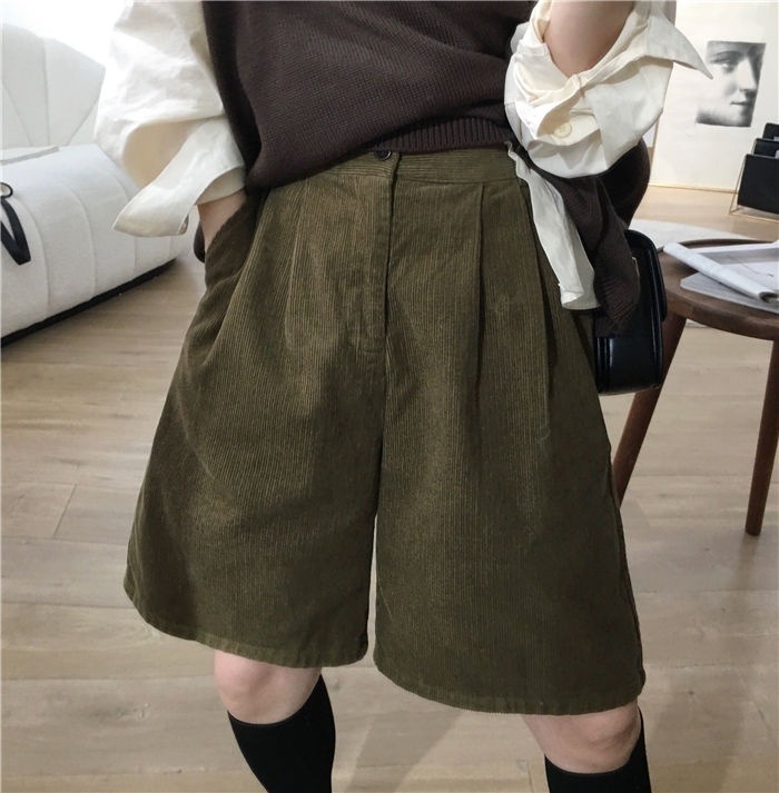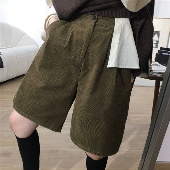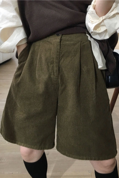• 밀리터리 그린 코듀로이 반바지 - 플리스 스타일