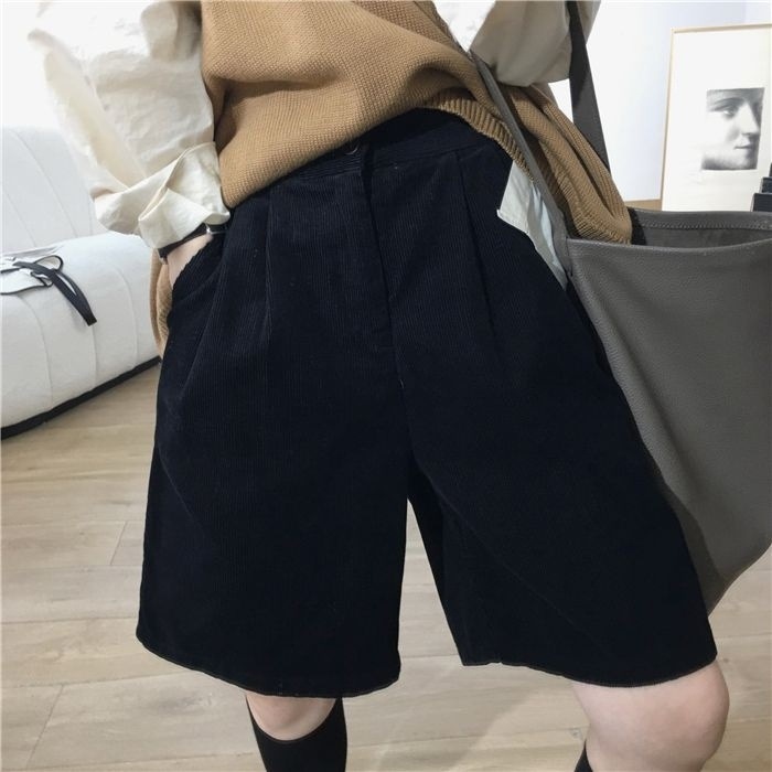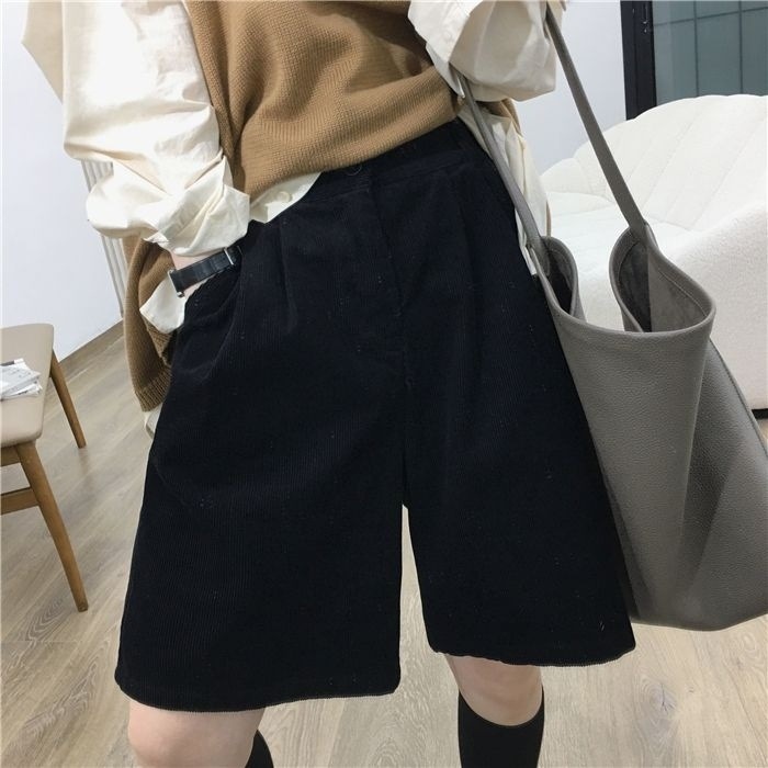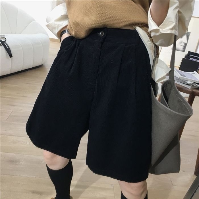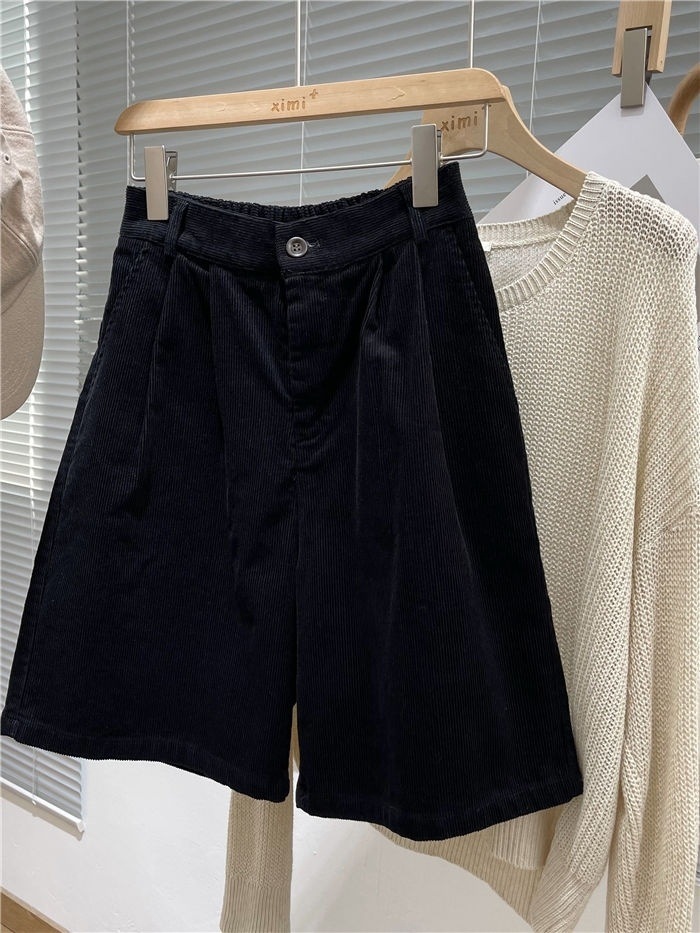 • 블랙 코듀로이 반바지 - 두꺼운 스타일
