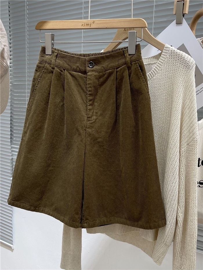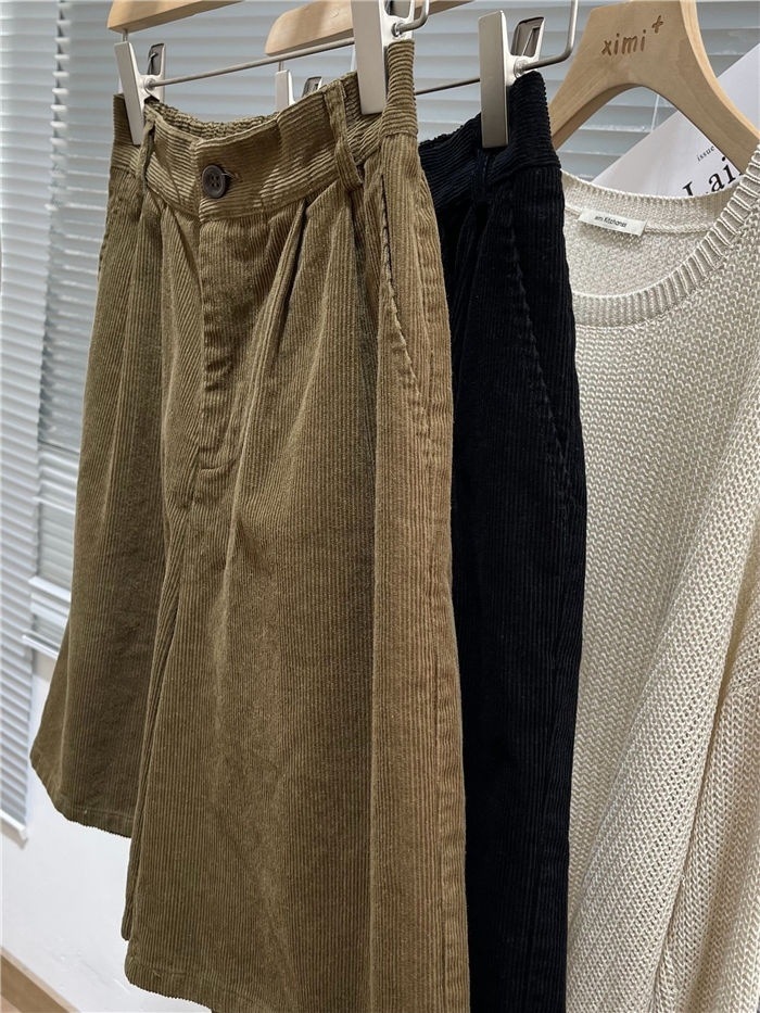 가을 겨울 여성용 하이웨이스트 레트로 미드팬츠, 뉴 아우터, 루즈한 A라인 와이드 레그 캐주얼 코듀로이 부츠팬츠