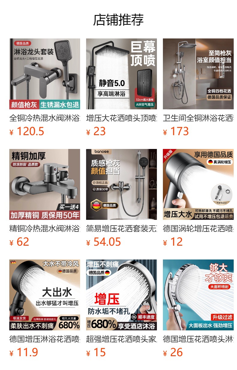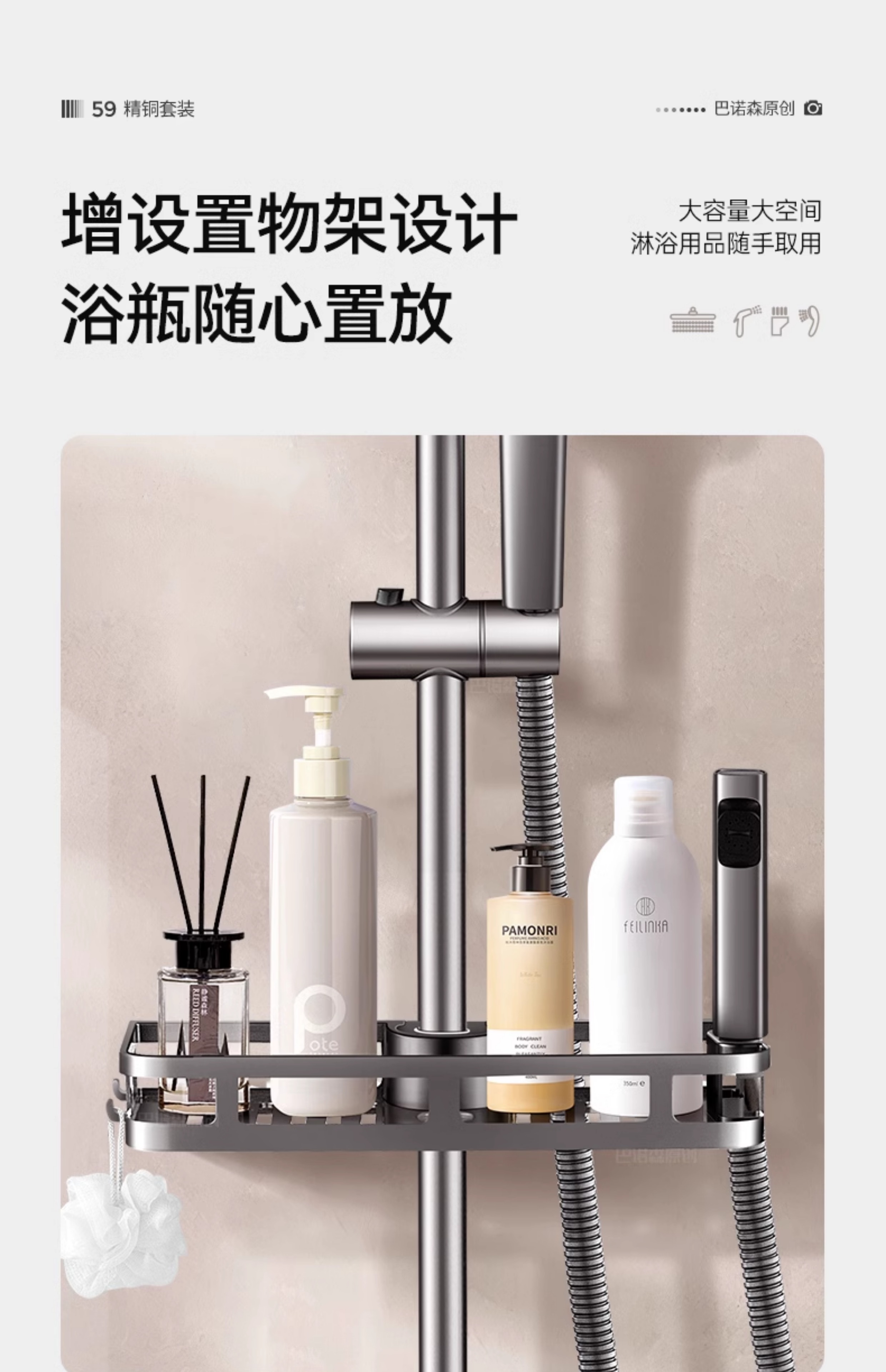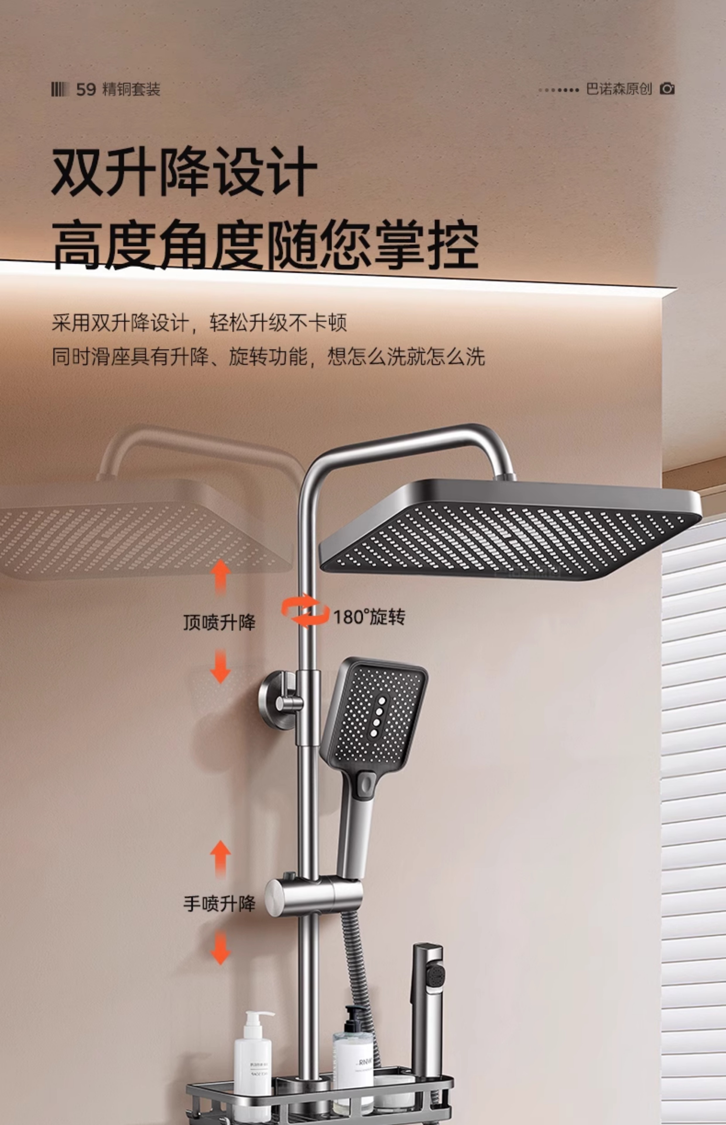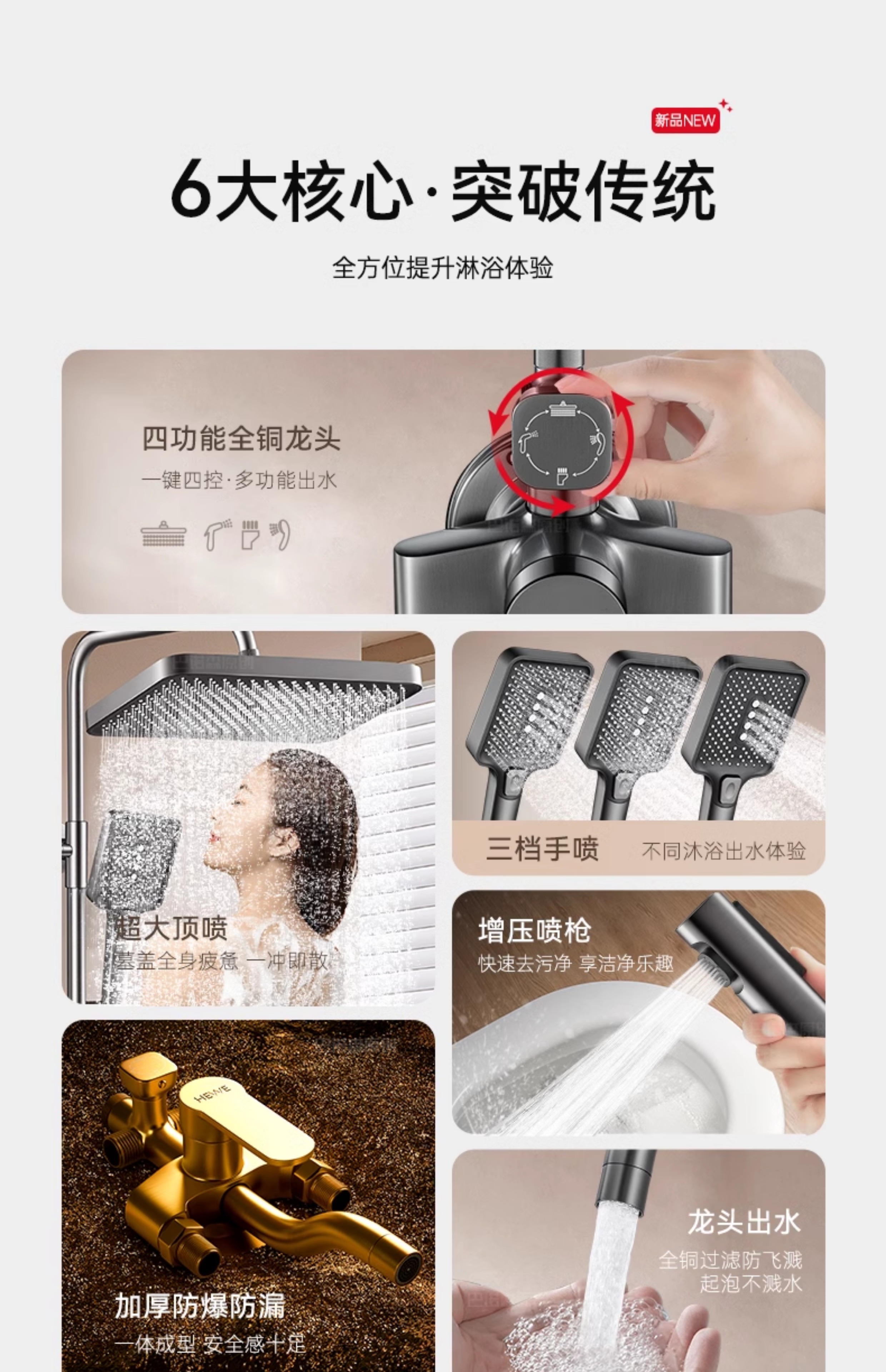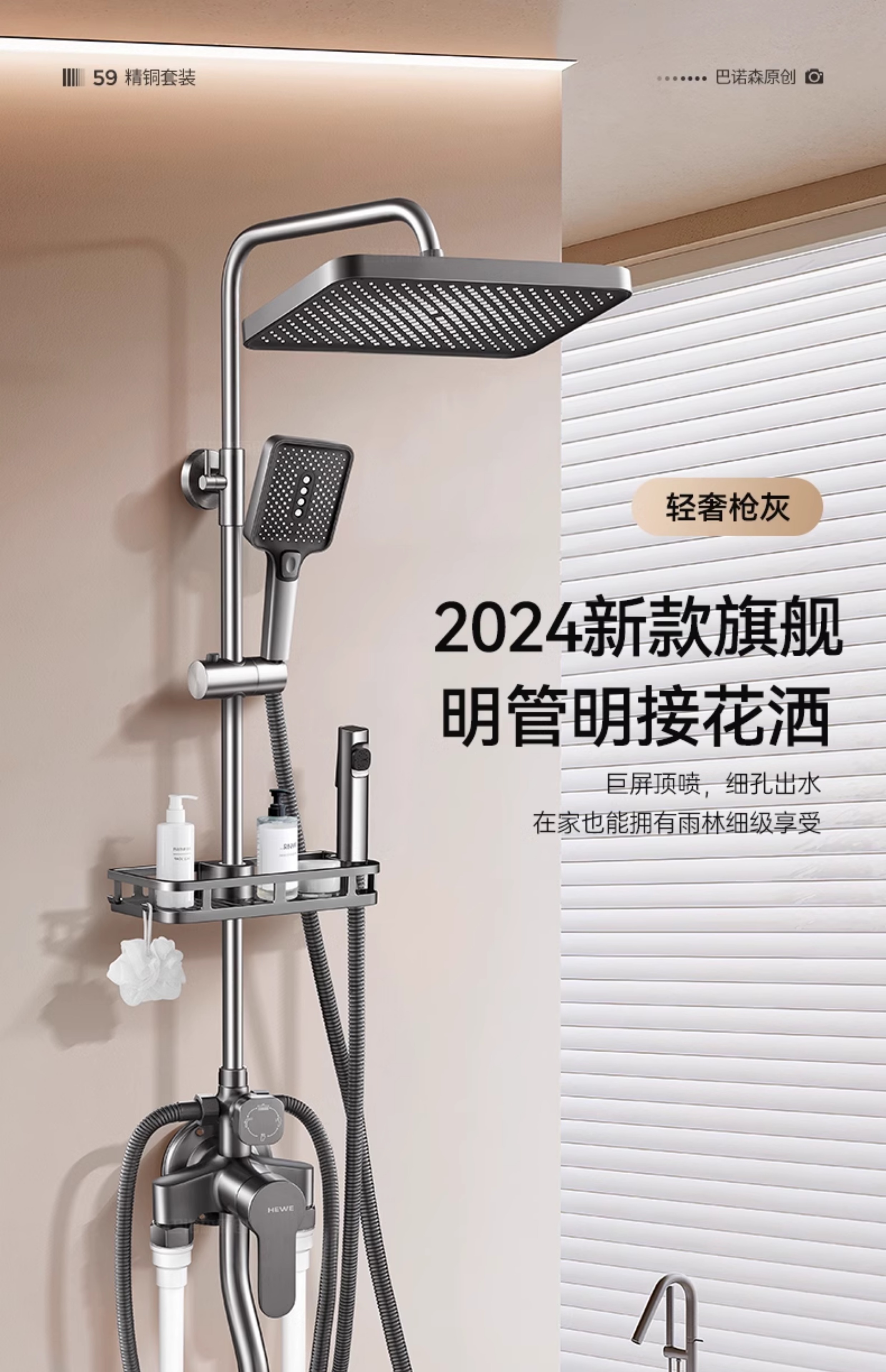 가정용 목욕용 올 구리 표면 장착형 샤워 헤드 세트, 가압 샤워 헤드, 노출형 파이프 및 노출형 샤워 헤드, 샤워기 전체 세트스토어 가기