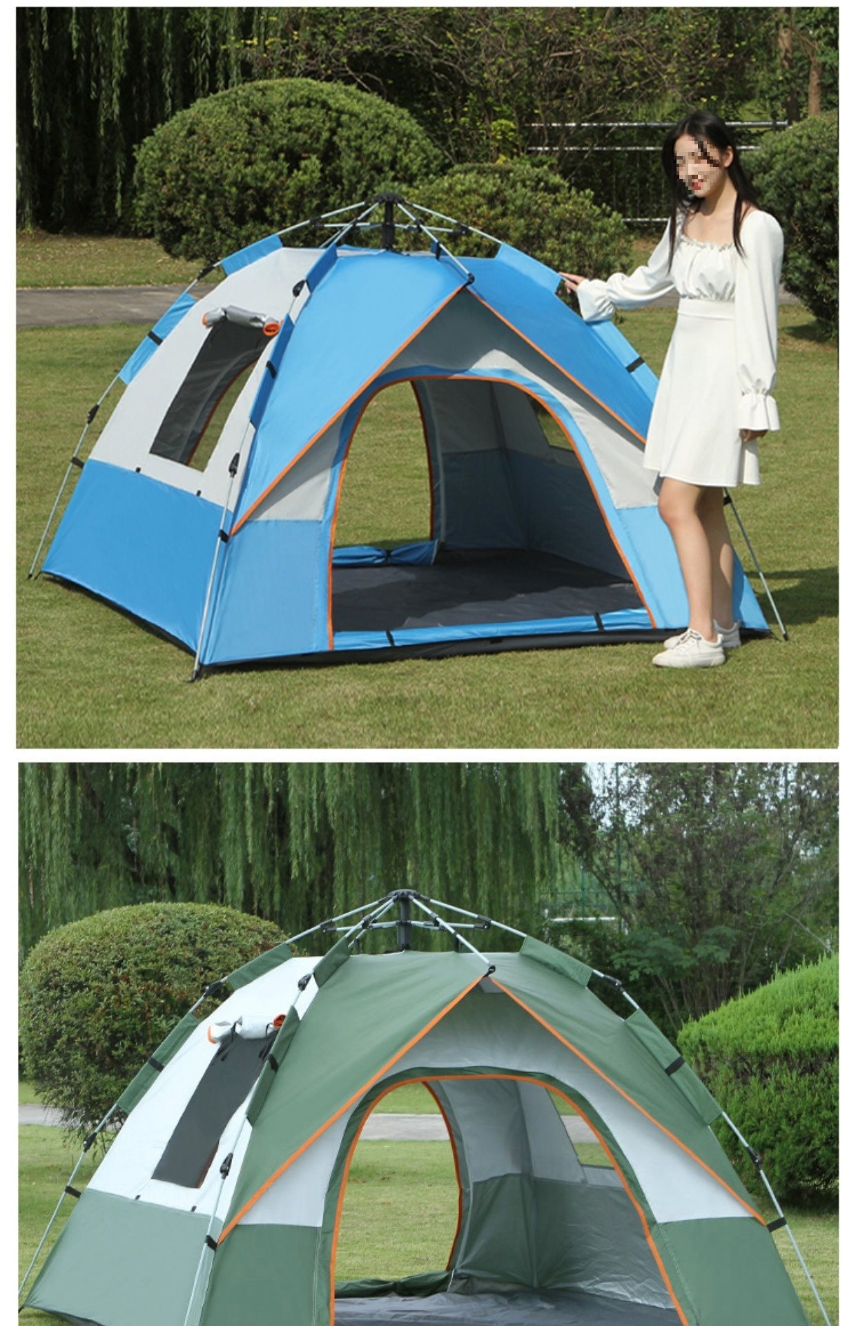 • 3~4인용 자동 블루 + 방습 패드 + 공기주입식 베개*3 [문 2개, 창문 2개]