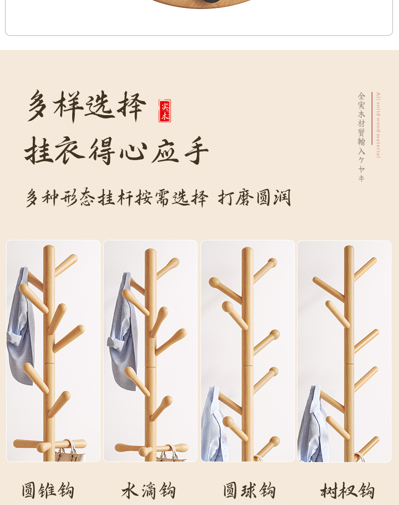 단단한 나무 옷걸이 바닥 스탠딩 코너 코트 랙 침실 홈 옷걸이 수직 간단한 옷걸이 막대 실내 걸이 신제품