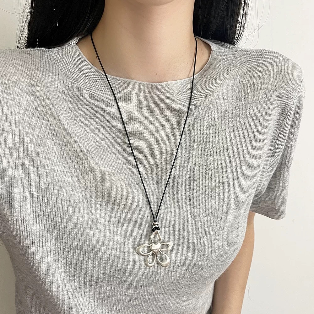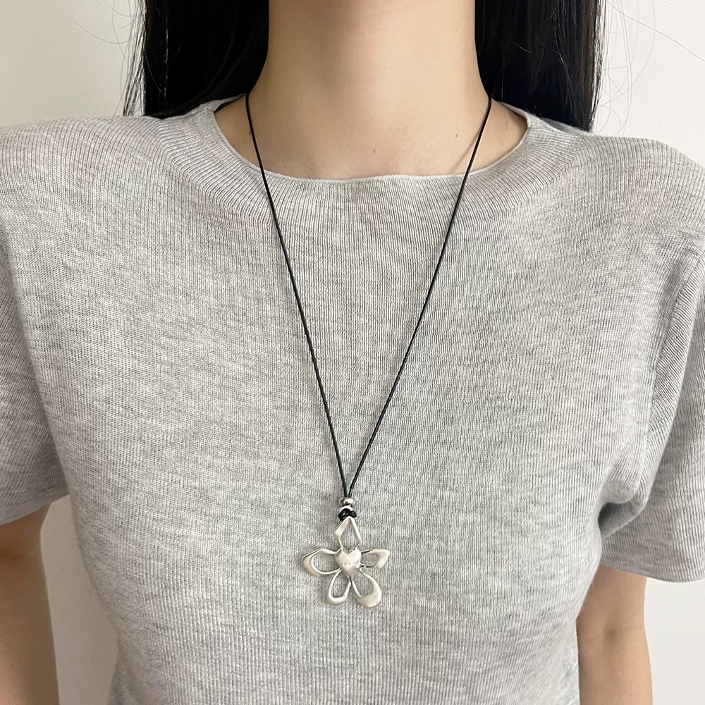 중공 대형 꽃 왁스 로프 드로잉 목걸이 여성용 인스타그램 스타일 하이 엔드 긴 목걸이 틈새 올 매치 액세서리
