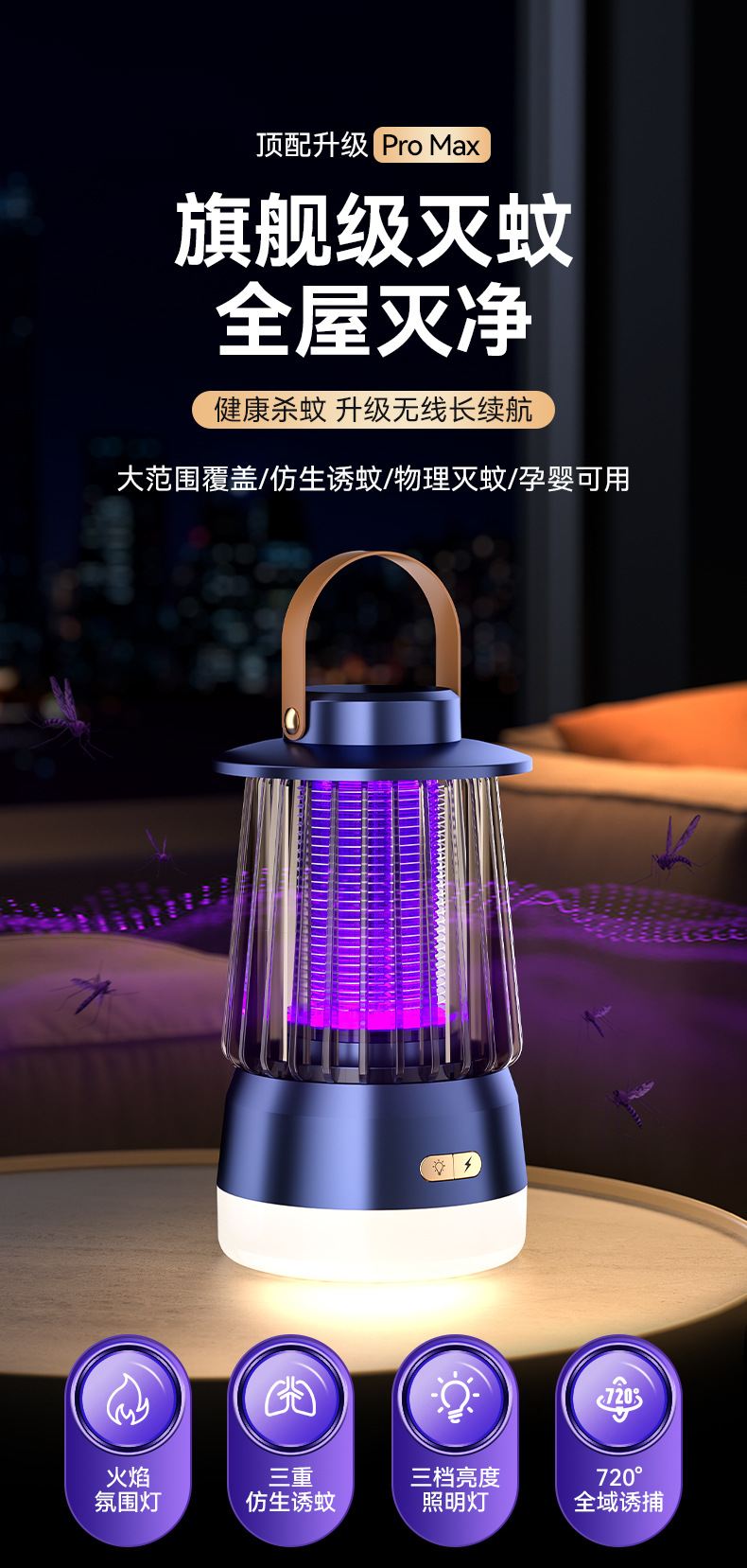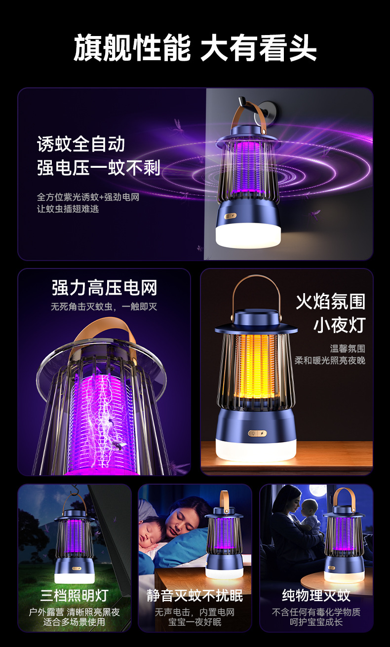 캠핑 불꽃 모기 램프 보라색 빛 모기 트랩 전기 충격 야외 충전식 홈 조명 모기 구충제 램프 모기 구충제 선물