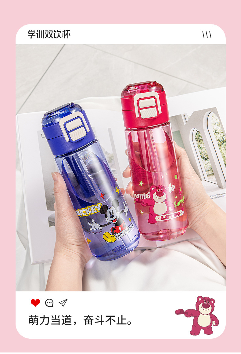 여성용 Xile 물컵 새로운 고급 트라이탄 플라스틱 컵 대용량 어린이 및 학생 더블 마시는 밀짚 컵스토어 가기