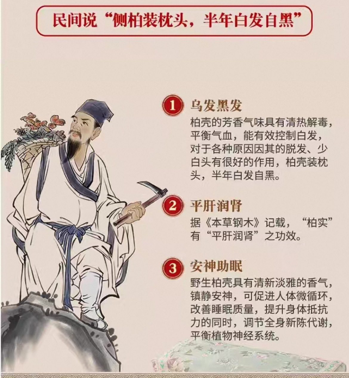 야생 사이프러스 껍질, 오래된 거친 천 경추 베개, 깨끗한 사이프러스 껍질 베개 코어 베개, 수면 개선, 태행산 사이프러스 씨앗 껍질