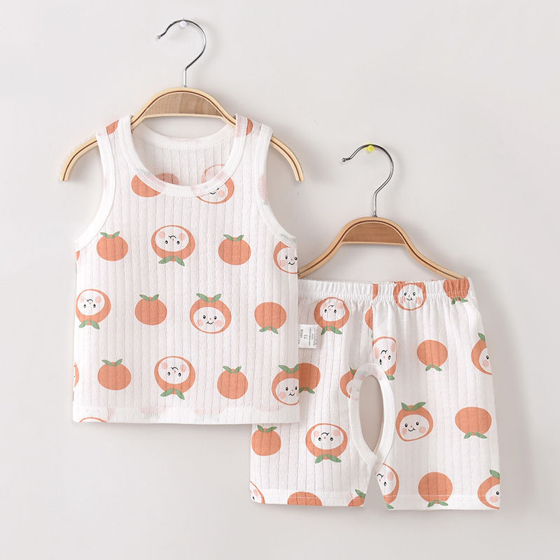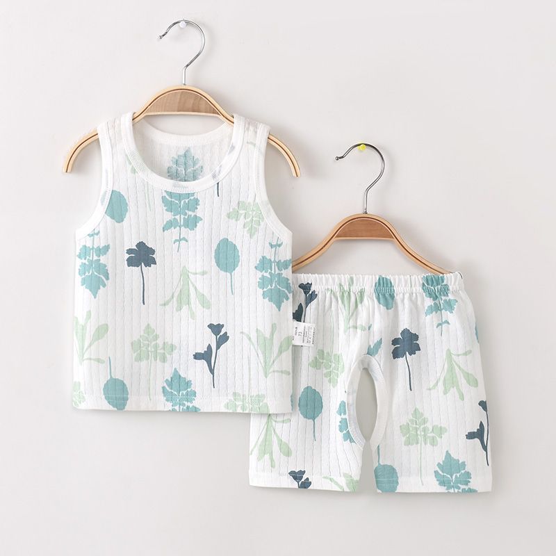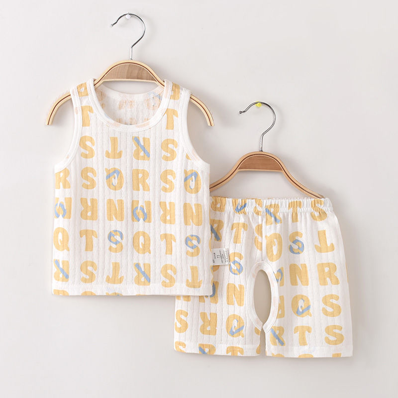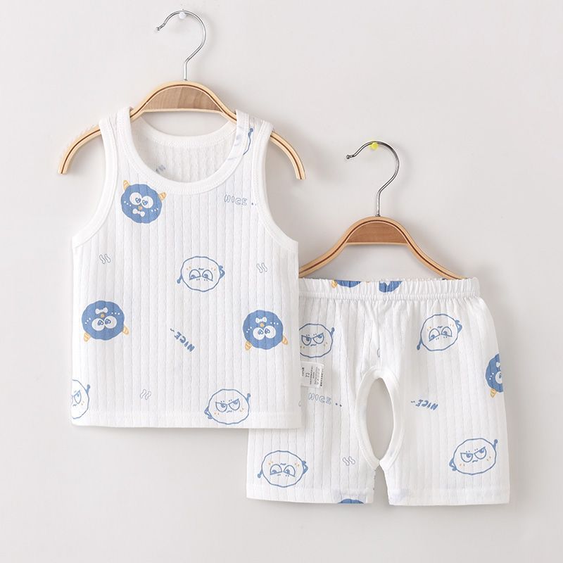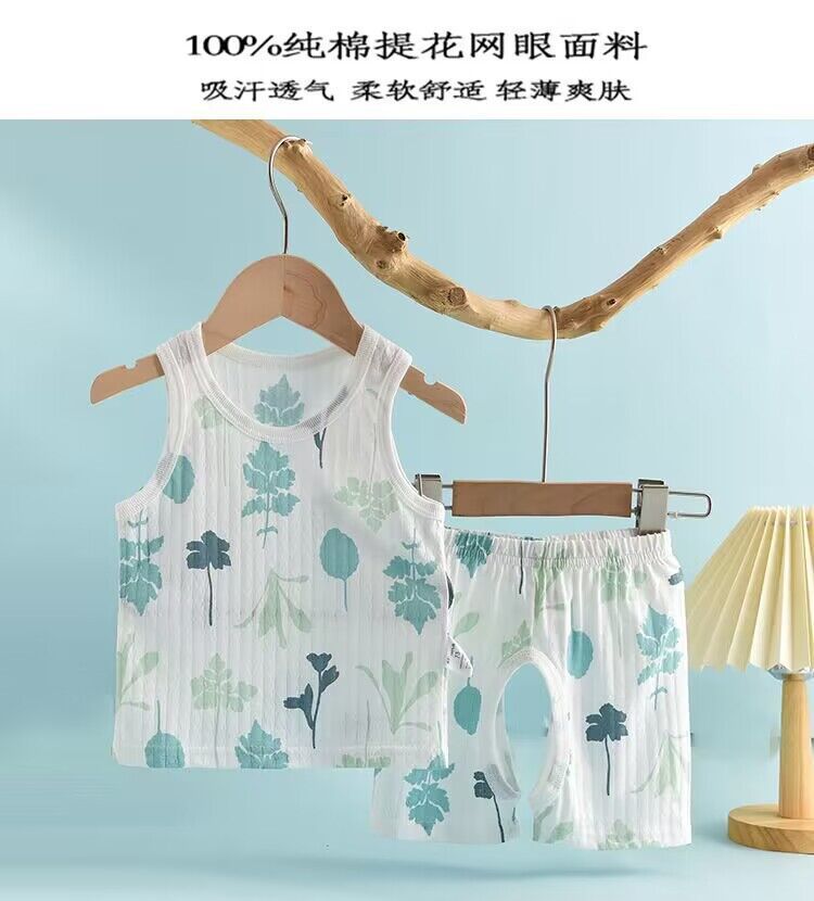아기 여름 옷 민소매 정장 순수 코튼 자카드 홈 의류 남성과 여성의 잠옷 얇은 통기성 투피스 세트