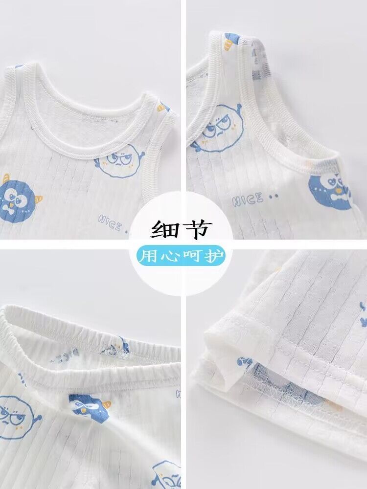 아기 여름 옷 민소매 정장 순수 코튼 자카드 홈 의류 남성과 여성의 잠옷 얇은 통기성 투피스 세트스토어 가기