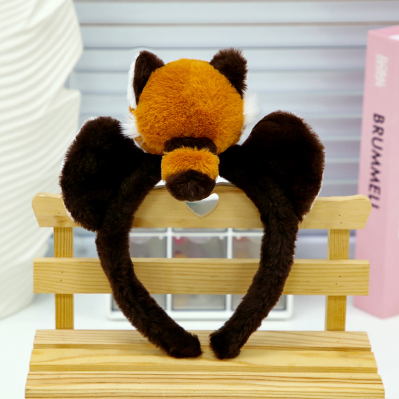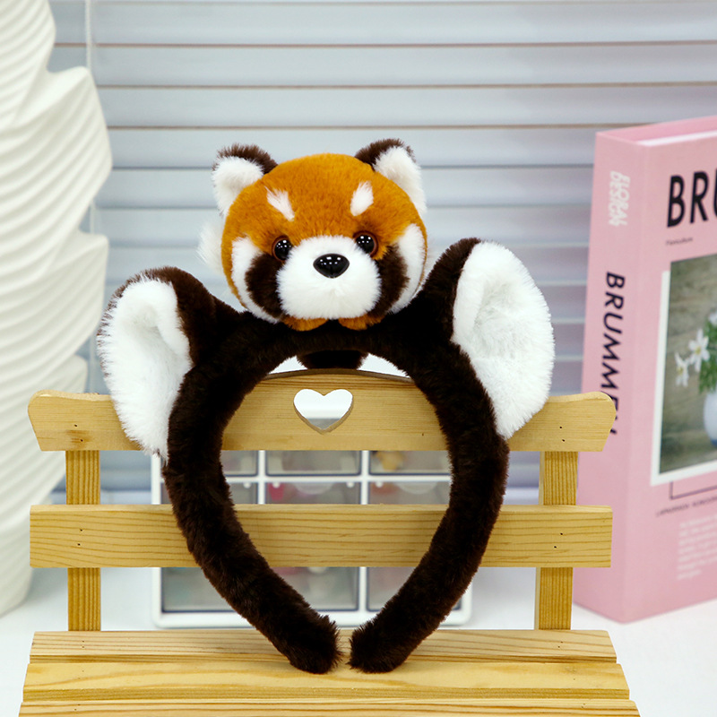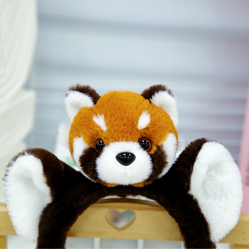 Lin Tian 레드 팬더 머리핀 플러시 장난감 머리띠 같은 스타일 입체 머리핀 머리 장식 귀여운 너구리 시뮬레이션 동물 배치스토어 가기