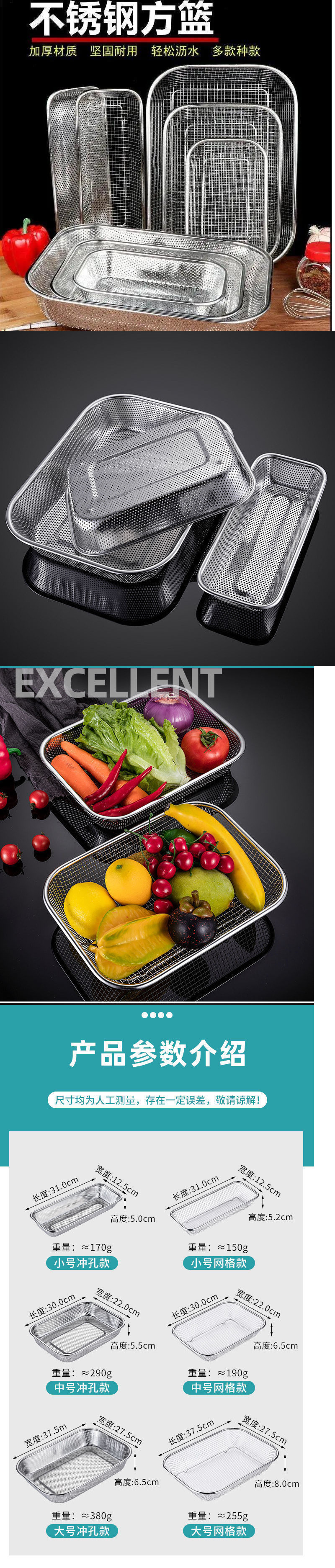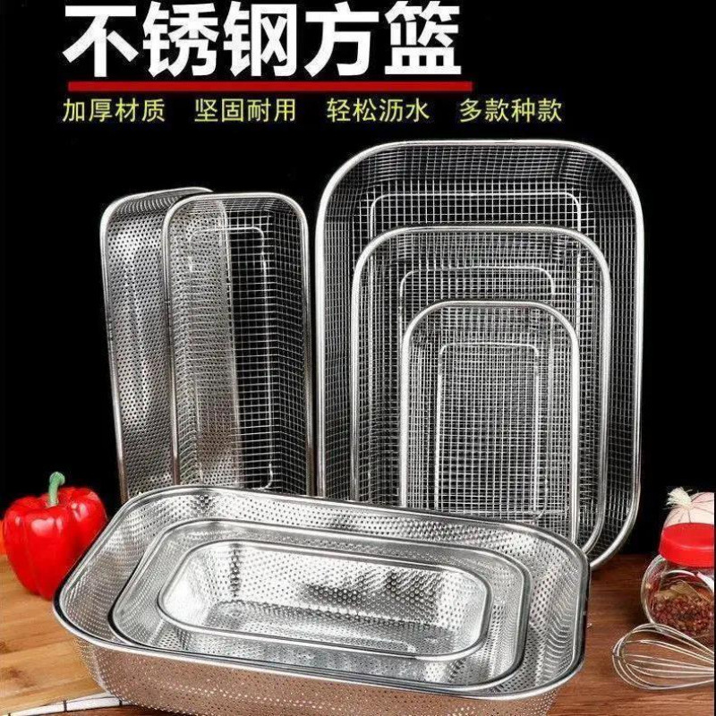 304 직사각형 스테인레스 스틸 배수 바구니 그릇 물 메쉬 과일 바구니 큰 구멍 메쉬 프레임 야채 세척 바구니 누출 바구니 분지스토어 가기