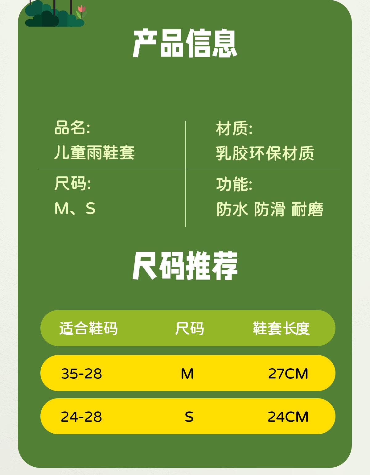 • A5 노란색 아동용 비옷