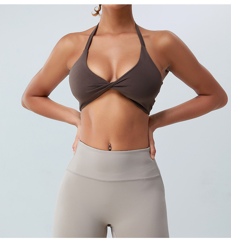 크로스보더 신상 홀터넥 스포츠 브라 U자형 끈 나시 여성 백리스 요가 브라 피트니스 요가복스토어 가기