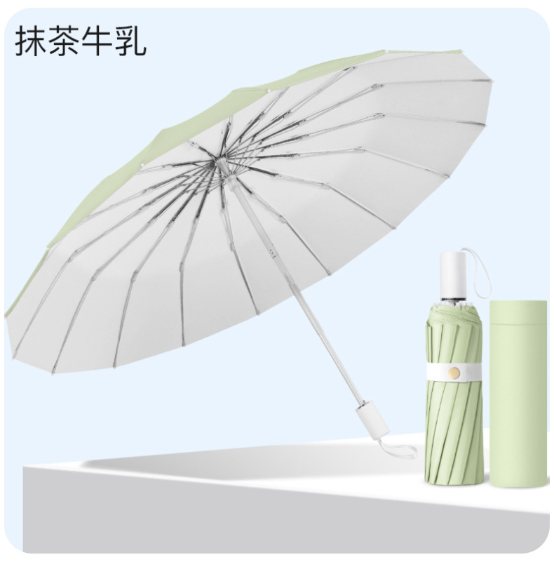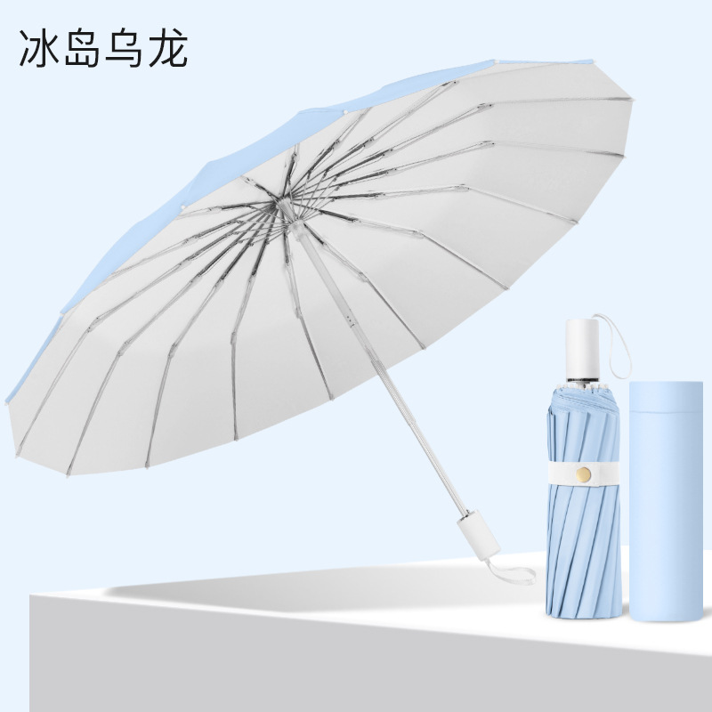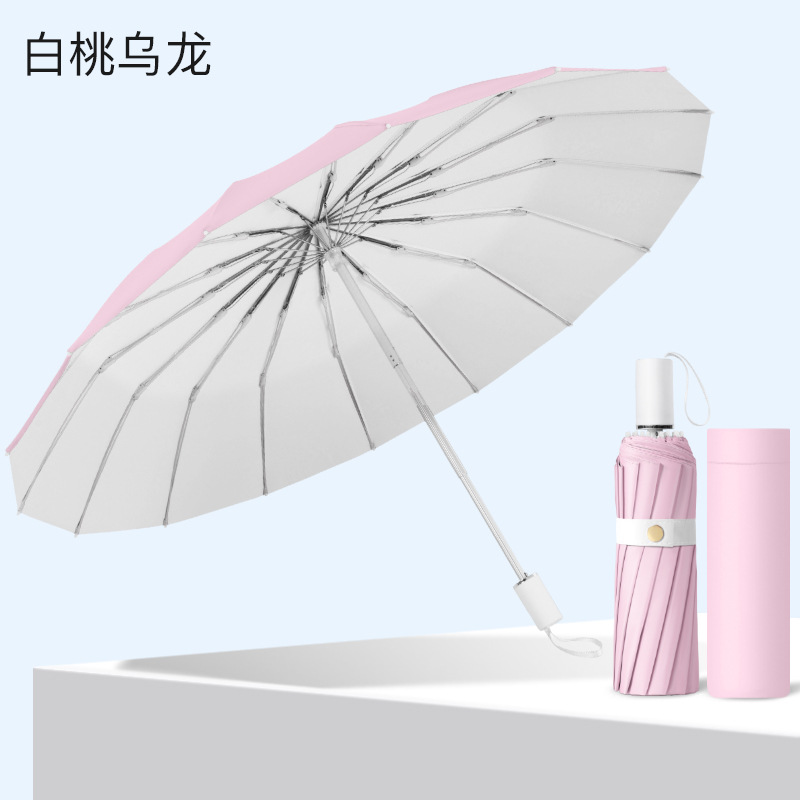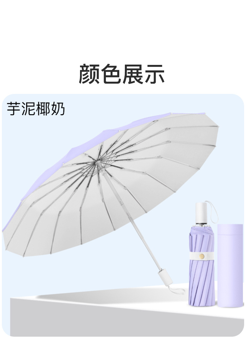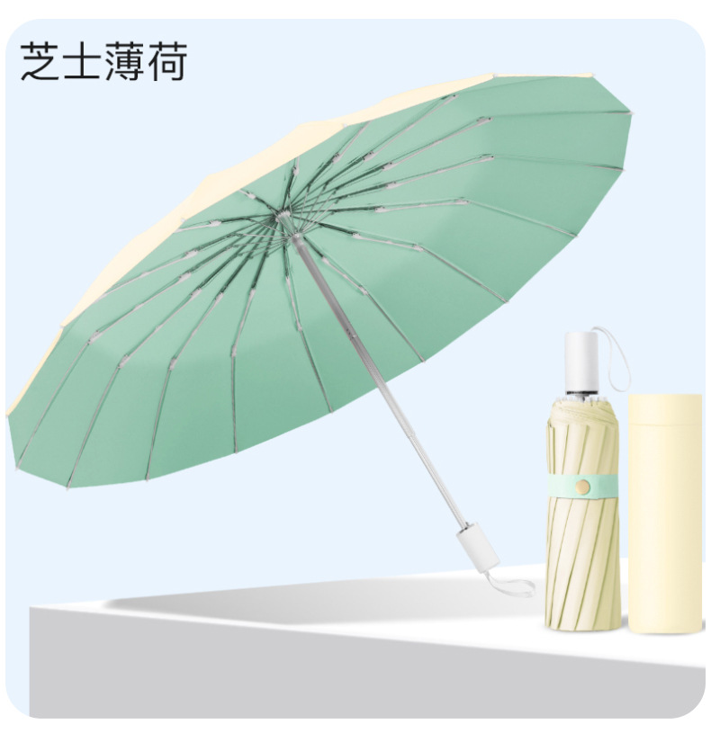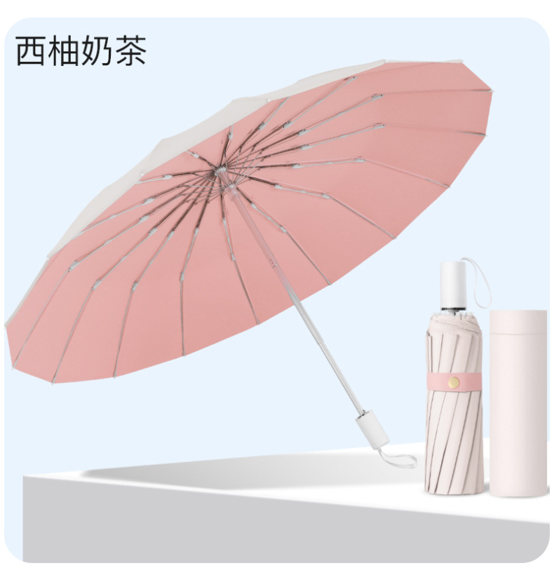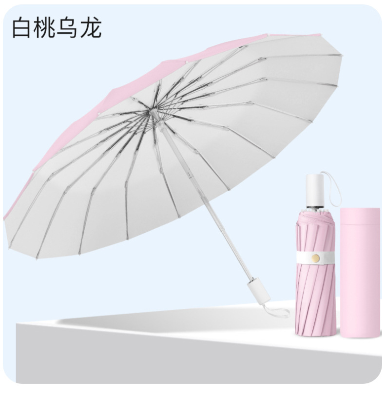 강화되고 강한 16-뼈 컬러 접착제 우산 접히는 태양 우산 태양 보호 자외선 보호 햇빛 우산 높은 색상 가치 맑고 비 이중 사용