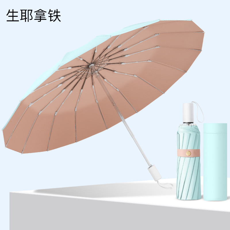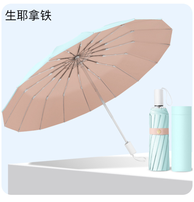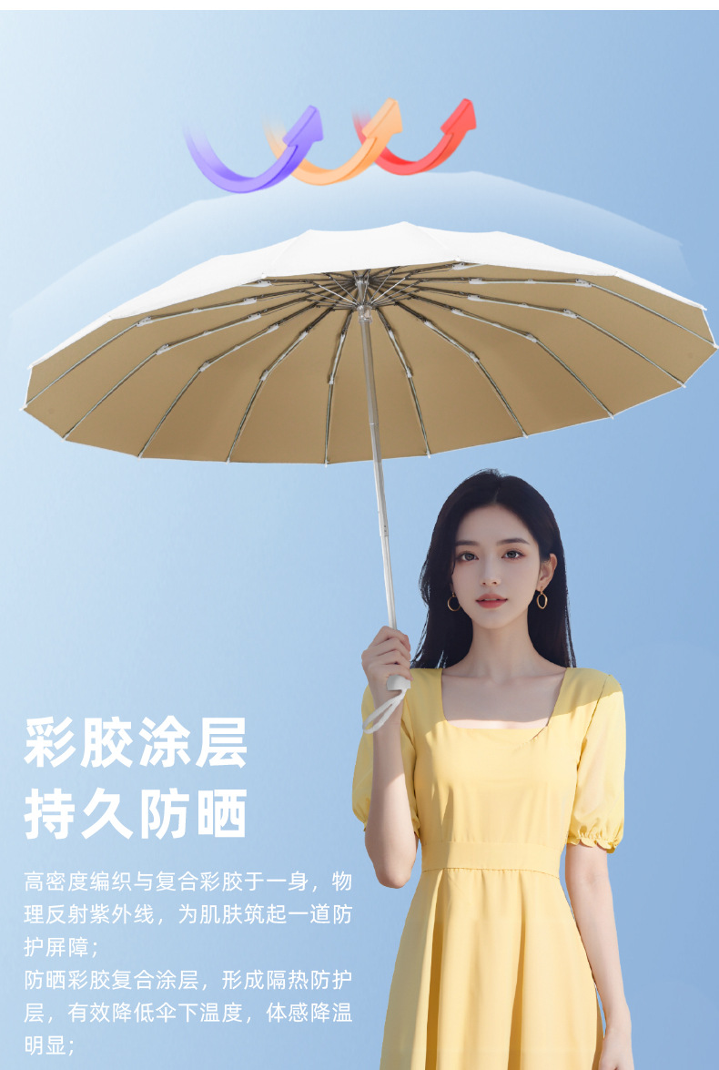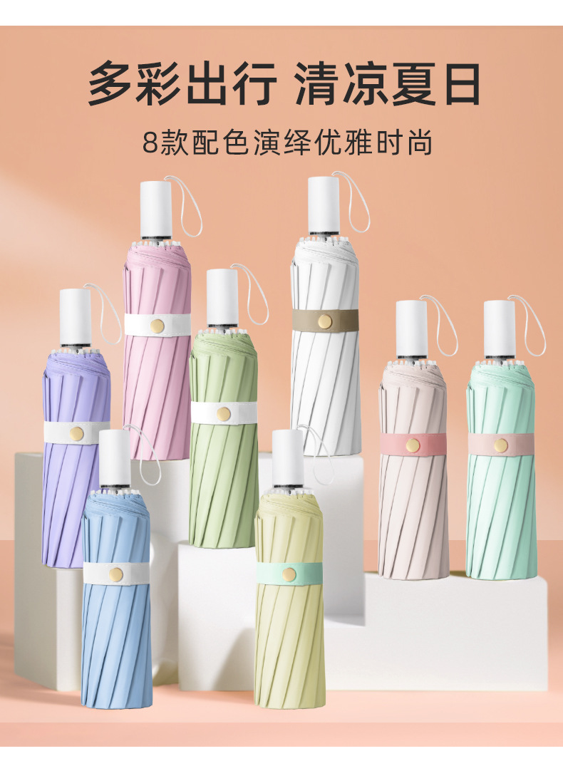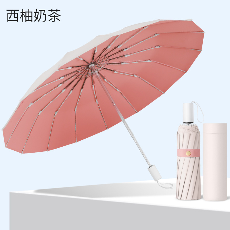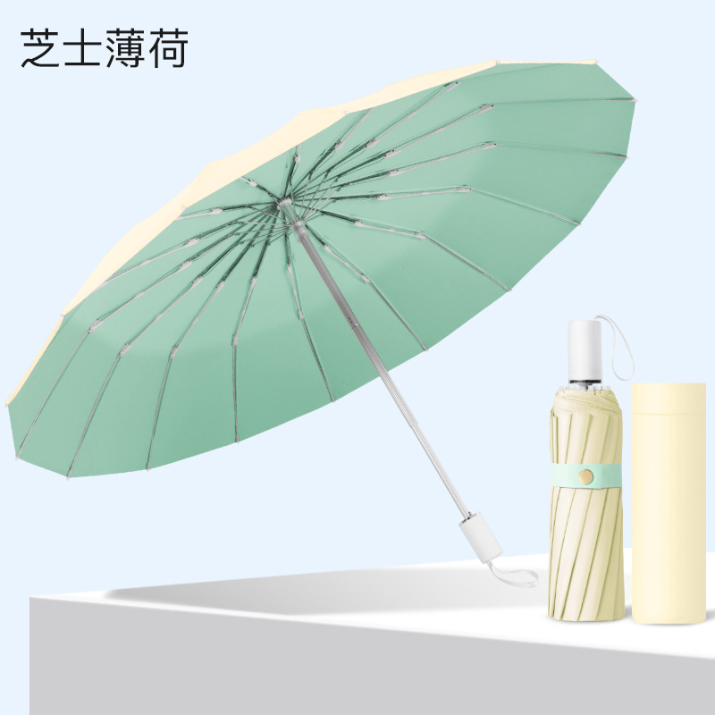 강화되고 강한 16-뼈 컬러 접착제 우산 접히는 태양 우산 태양 보호 자외선 보호 햇빛 우산 높은 색상 가치 맑고 비 이중 사용