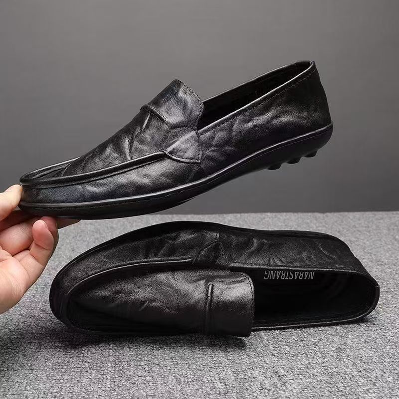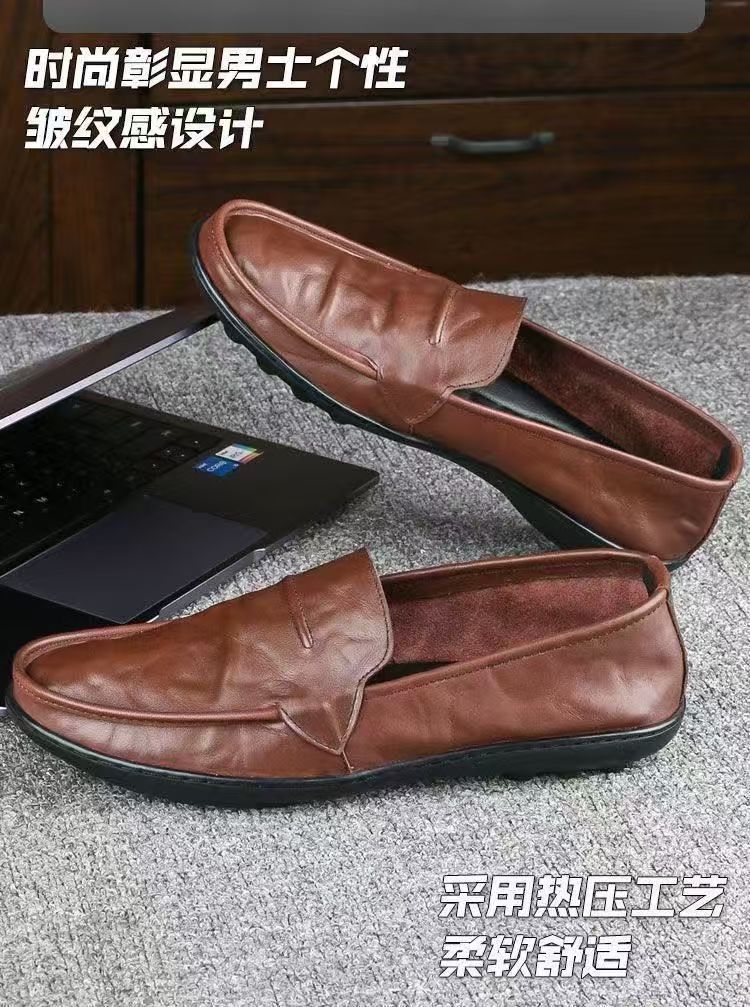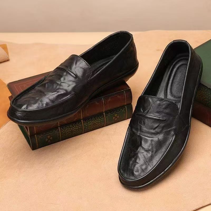 여름 통기성 얇은 비니 신발 부드러운 밑창 슬립 온 남성 캐주얼 신발 비즈니스 영국 스타일 가죽 신발 남성 신발 도매