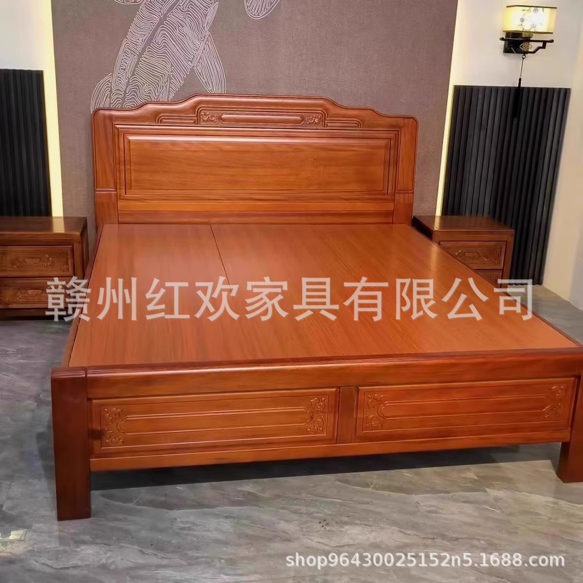 로즈우드 원목 침대 더블 침대 1.5m 마스터 침실 대형 침대 1.8m 웨딩 침대 중국식 모닥부 골동품 조각 침대