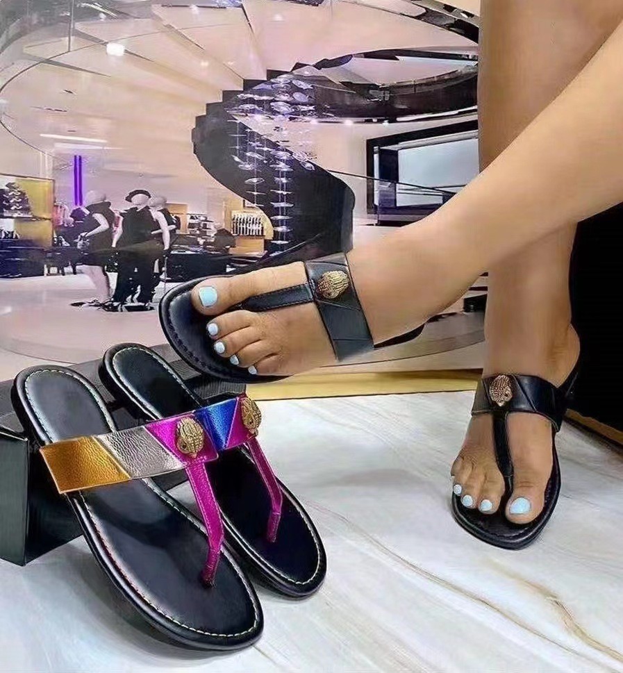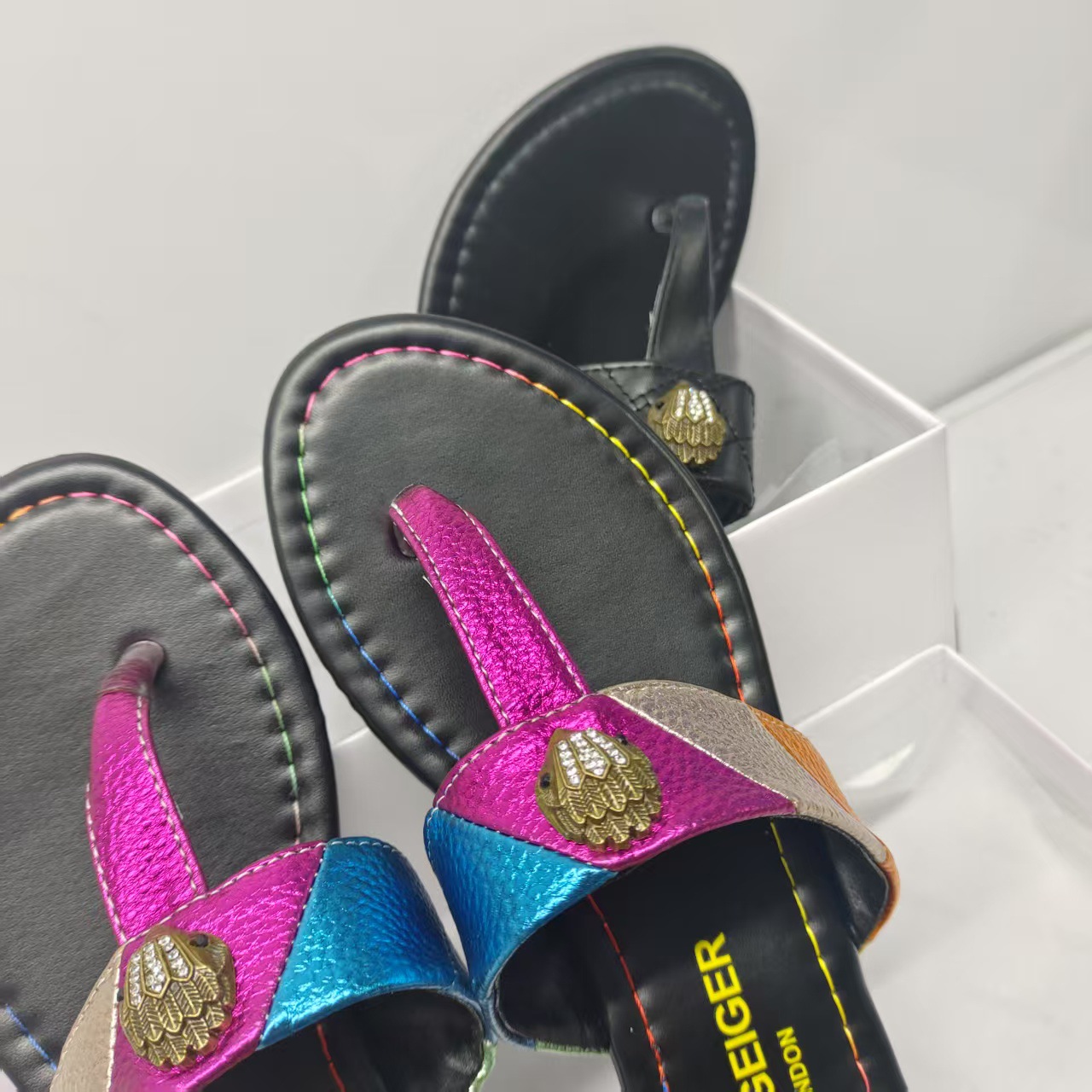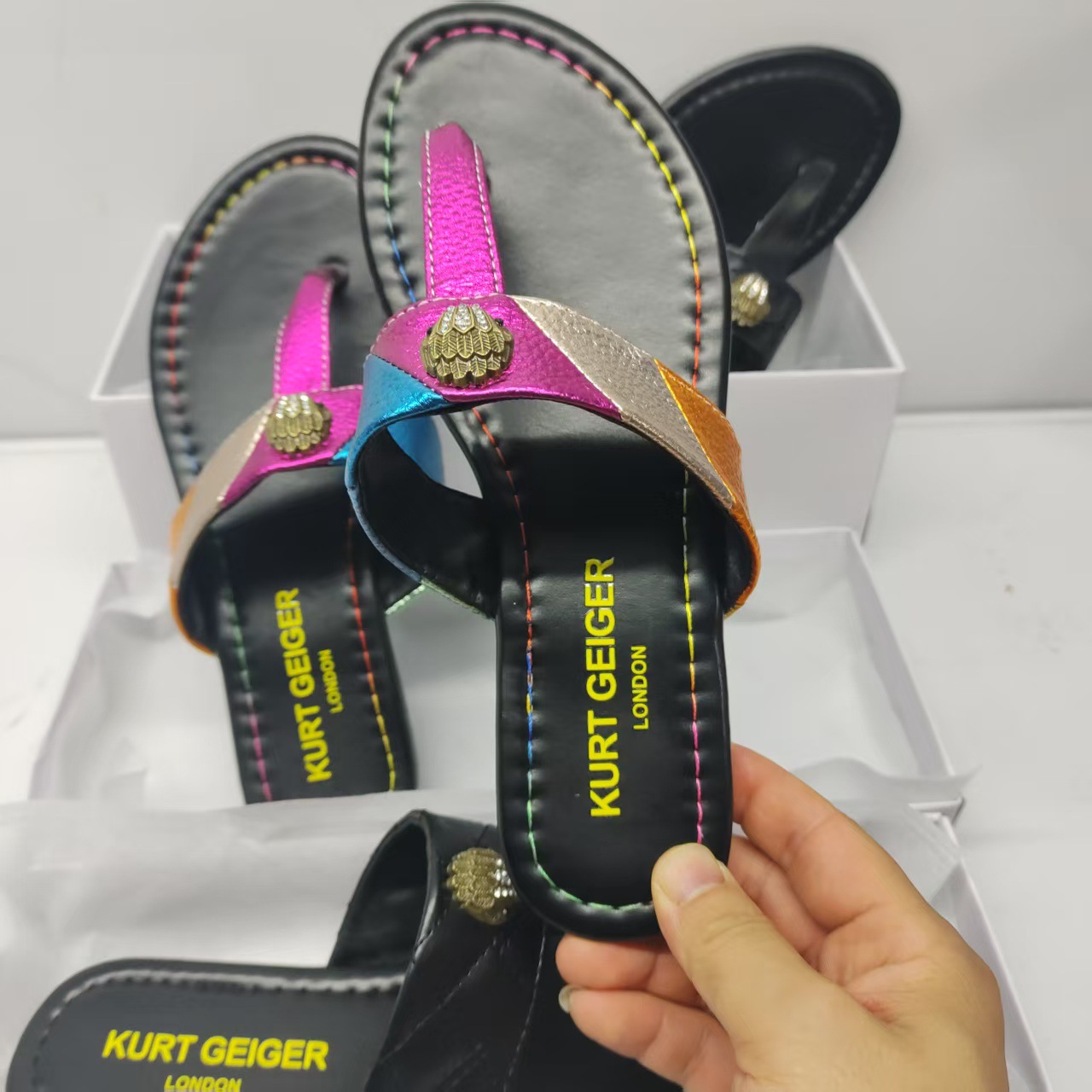 여름 여성 슬리퍼 KURT 이글 헤드 컬러 블록 슬리퍼 다용도 슬리퍼 통기성 통근 올인원 크로스보더 여성화
