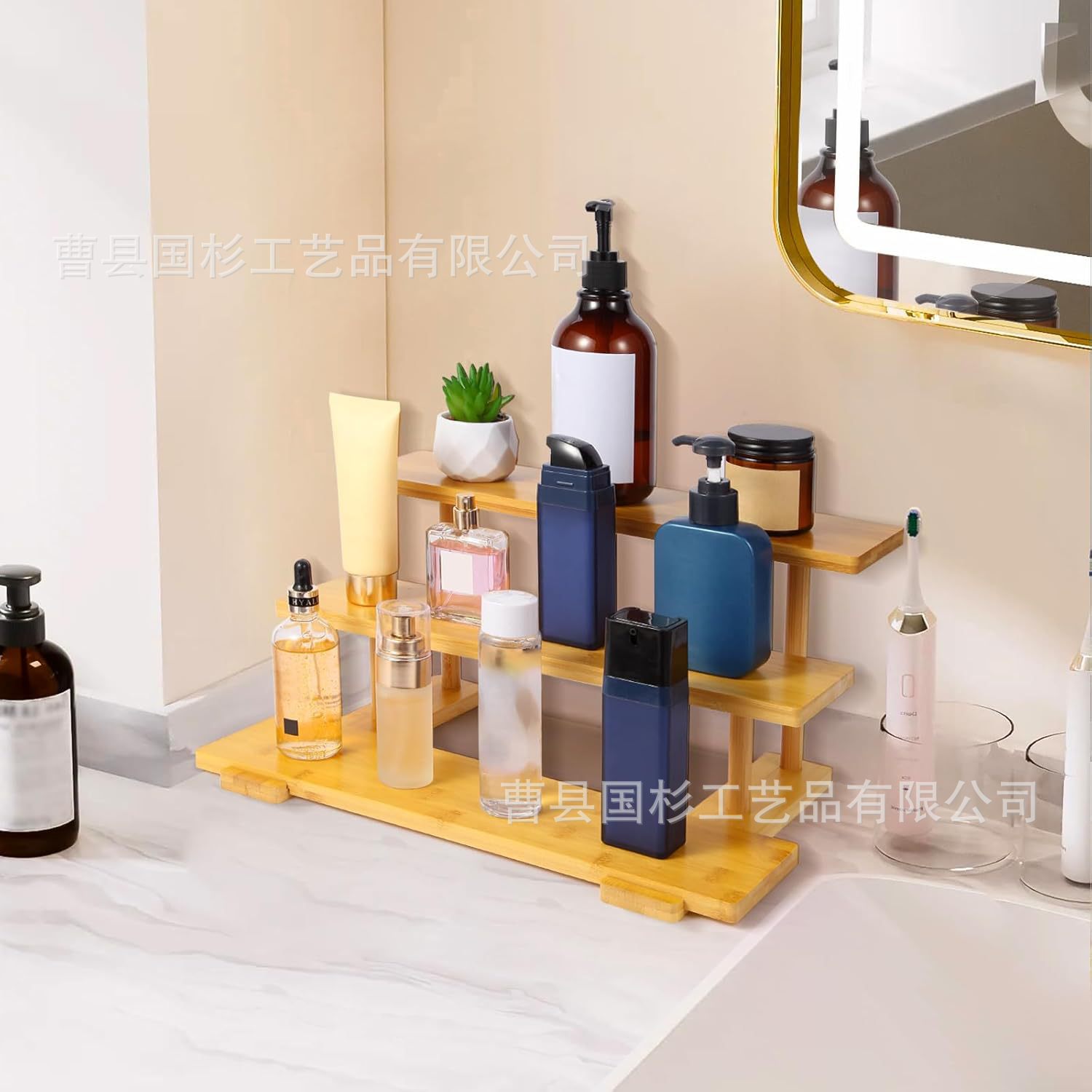 단단한 나무 데스크탑 스토리지 랙, 계단식 디스플레이 랙, 향수 랙, 컵 홀더, 다중 사양의 보석 사다리꼴 스토리지 랙